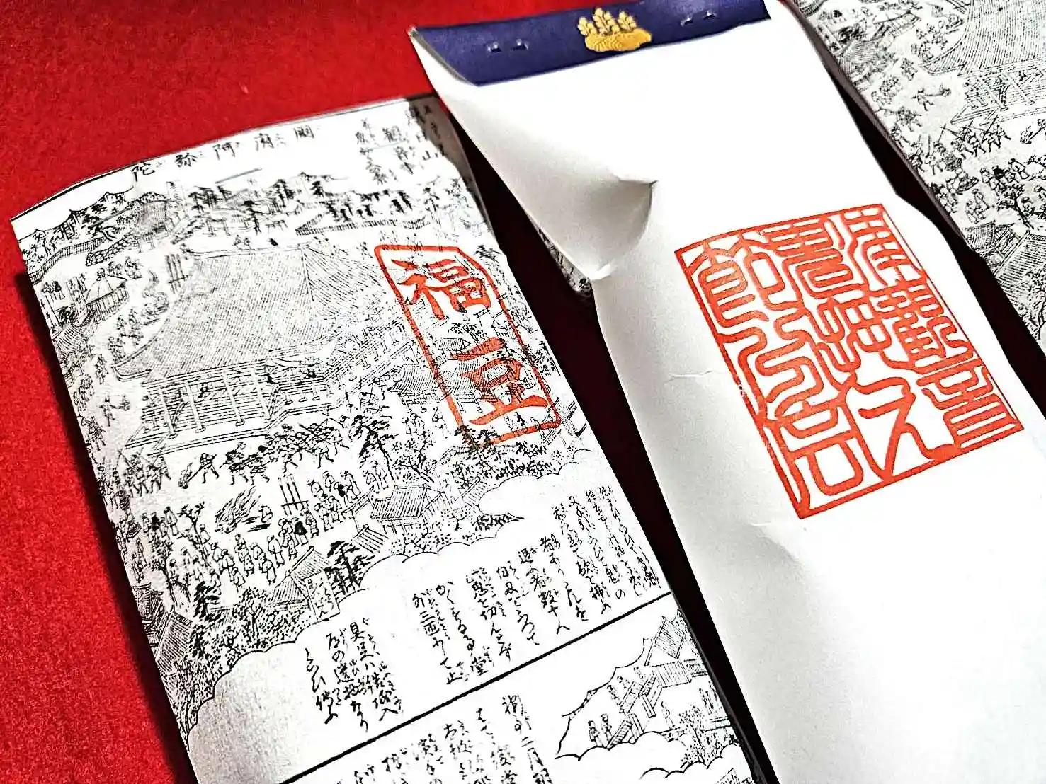 節分の鬼退治に豆が使われるのは「穀物には生命力と魔除けの力がある」、または語呂合わせで「魔目(豆・まめ)」を鬼の目に投げつけて鬼を滅する「魔滅」など、鬼に豆をぶつけることにより邪気を払い、或いは自ら食べることで 一年の無病息災を願う意味があるそうです。袋には伊勢参宮名所図会に描かれた『鬼押さえ祭』の様子が描かれています。