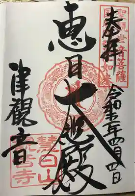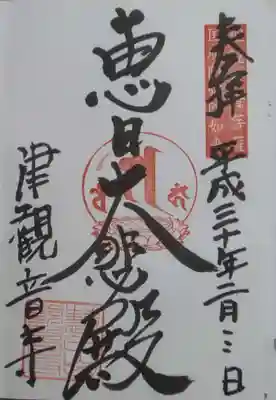 惠日大悲殿 直書き御朱印です。