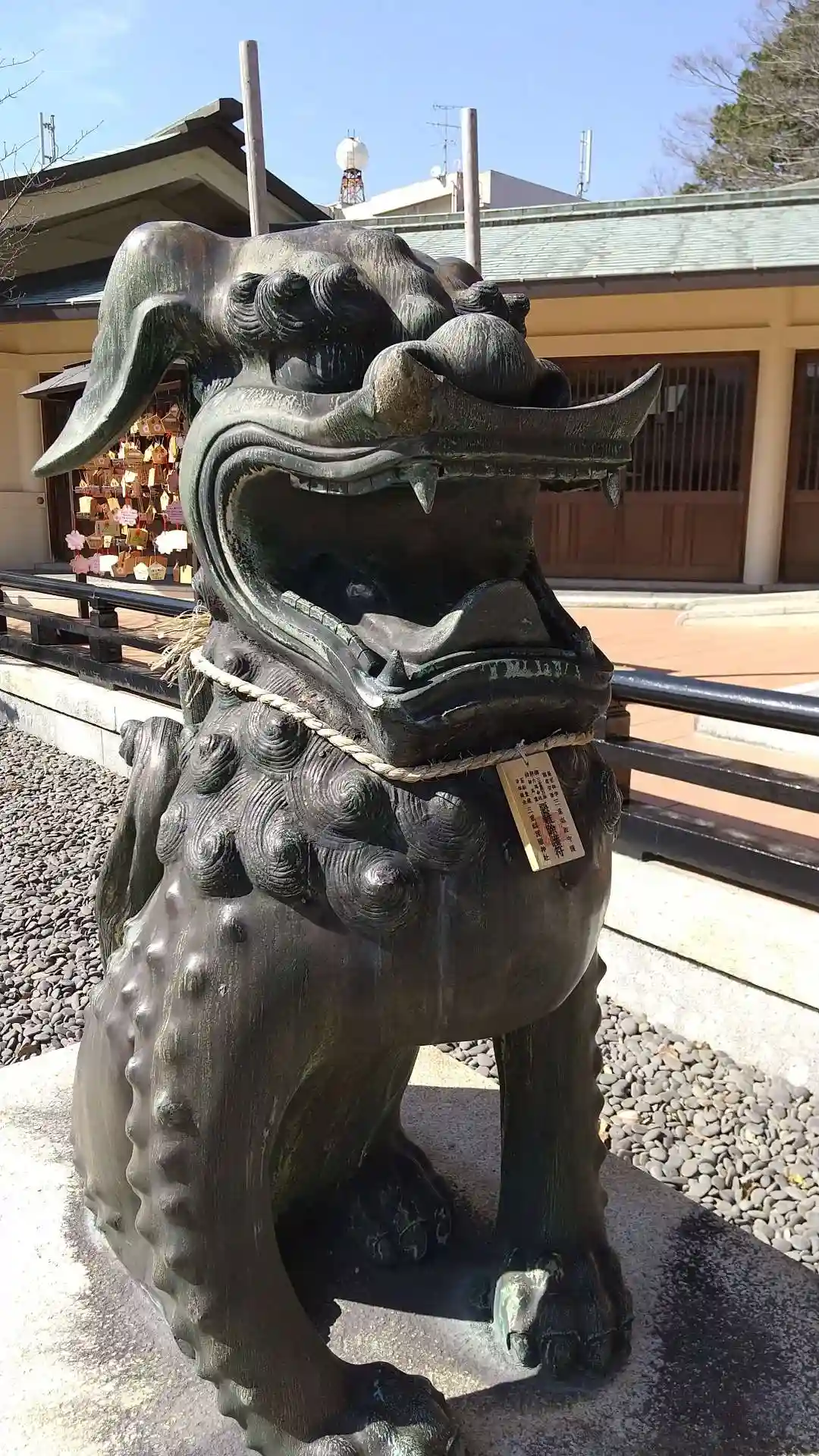 狛犬の首に厄除護符。なんか、かわいい。