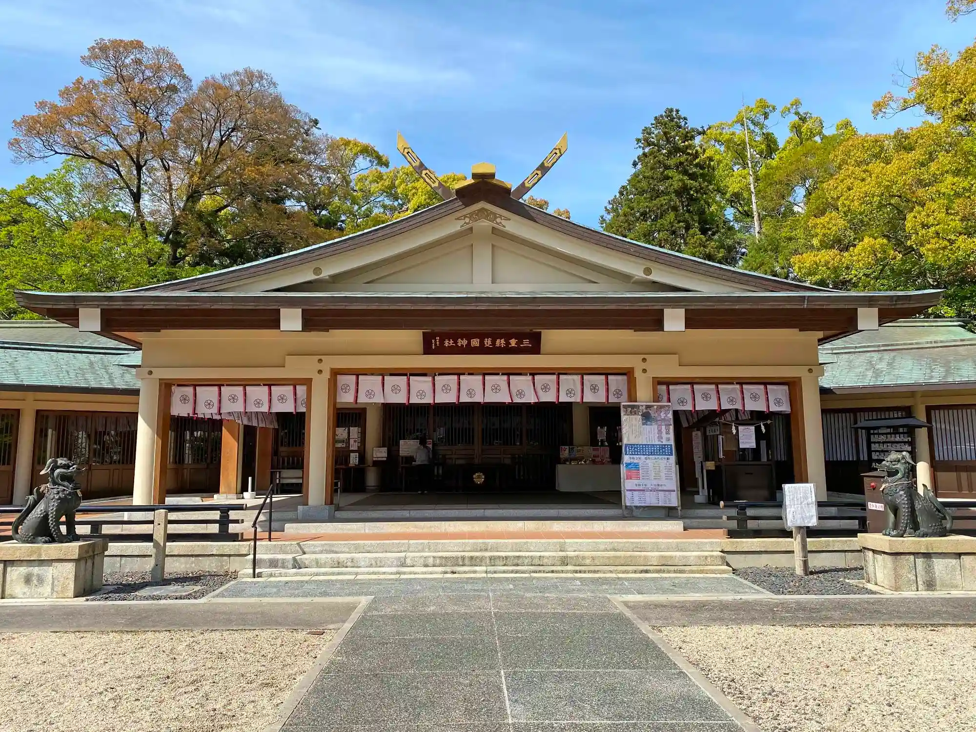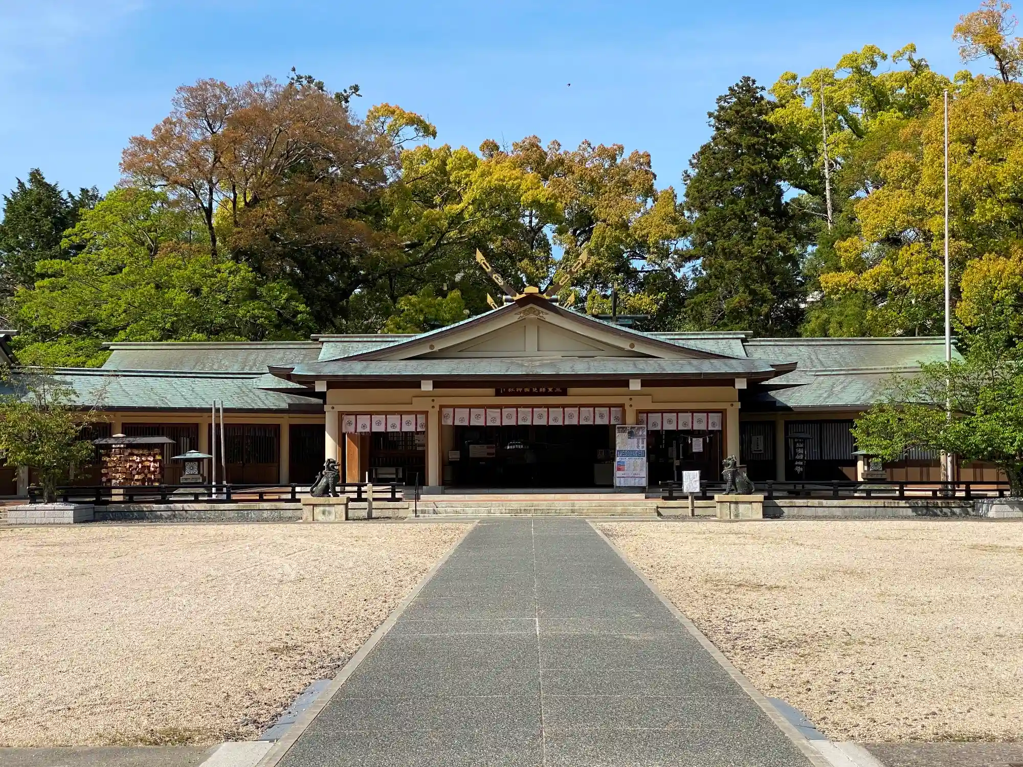 拝殿と左右翼殿。神明造の端正なルックス。