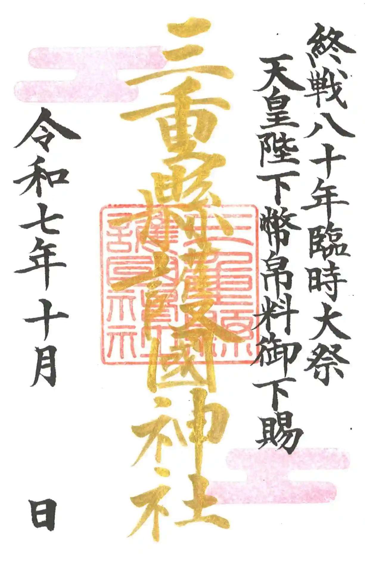 終戦八十年臨時大祭御朱印