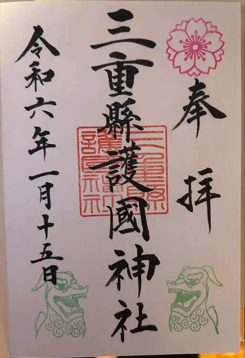 先日、三重縣護国神社に提灯の献灯をし、その記念の限定御朱印をいただきに参拝しました。