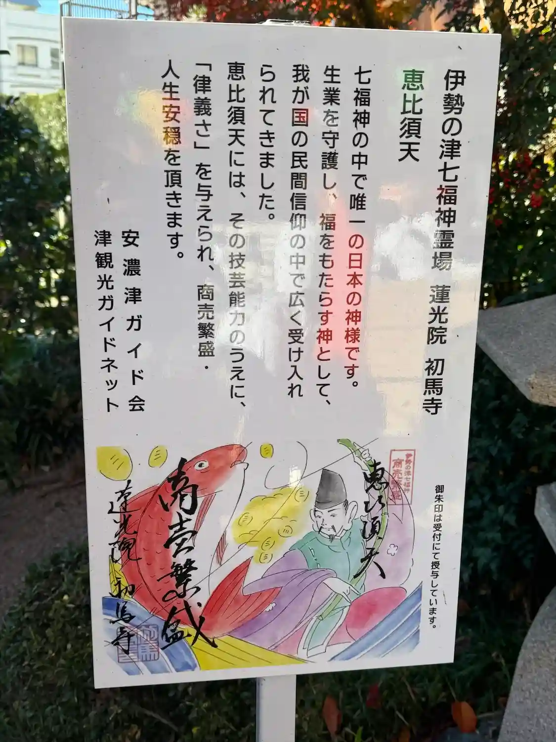 三重四国八十八箇所64番、伊勢西国三十三所観音霊場17番、伊勢津七福神(恵比寿)