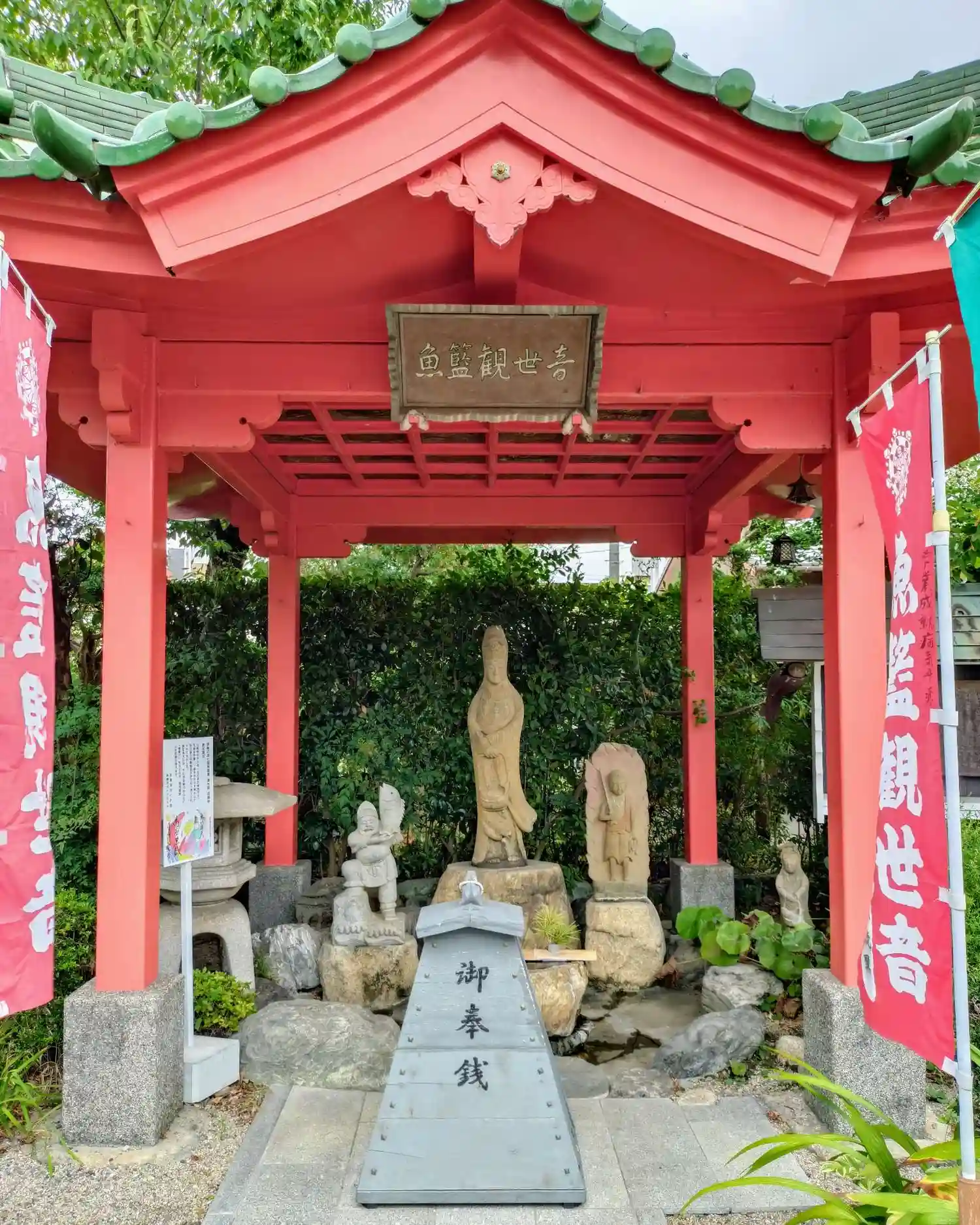 魚籃観音さんの隣に、鯛を掲げる恵比須天🐟