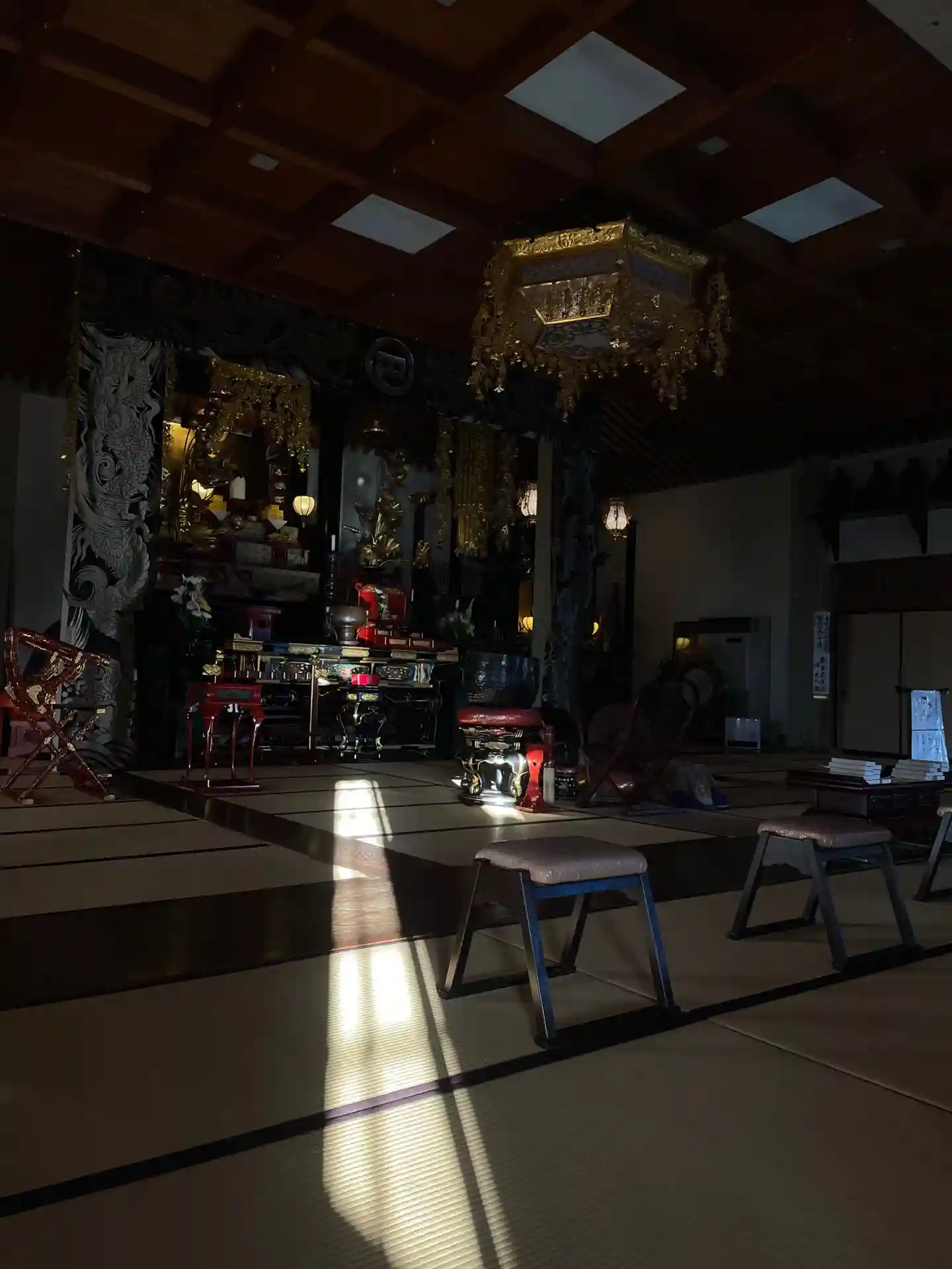 今朝は冷えたので、位牌堂が金色に輝いておりました。