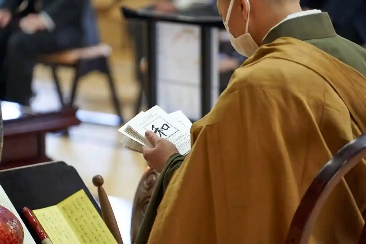 和の一文字写経のハガキも同封し、同じ文字をなぞっていただきお寺にお送りいただけますと、毎月22日の法要でご祈願致します。