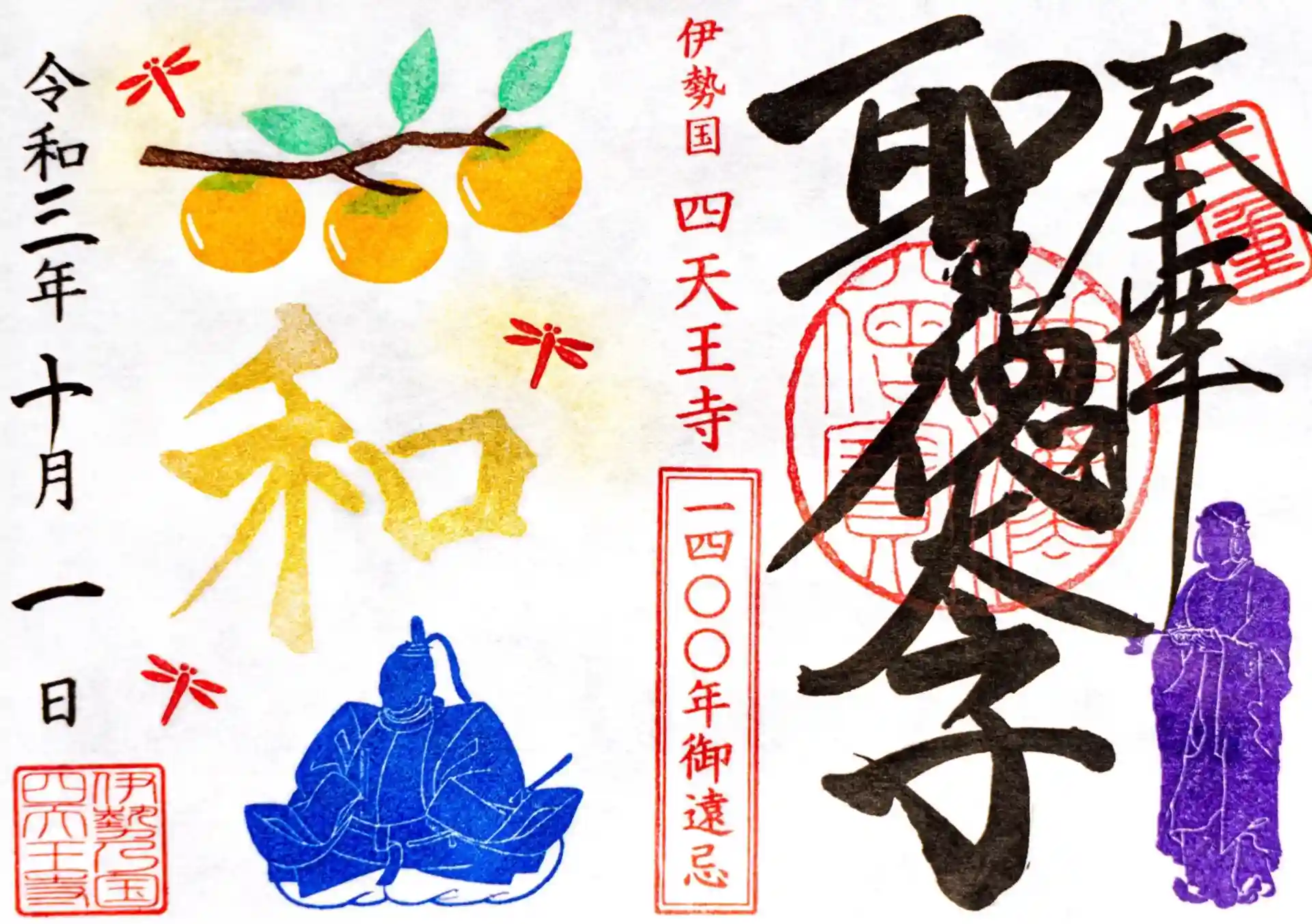 10月限定「柿と藤堂高虎」の聖徳太子1400年限定御朱印の紹介はこちらをご覧ください。