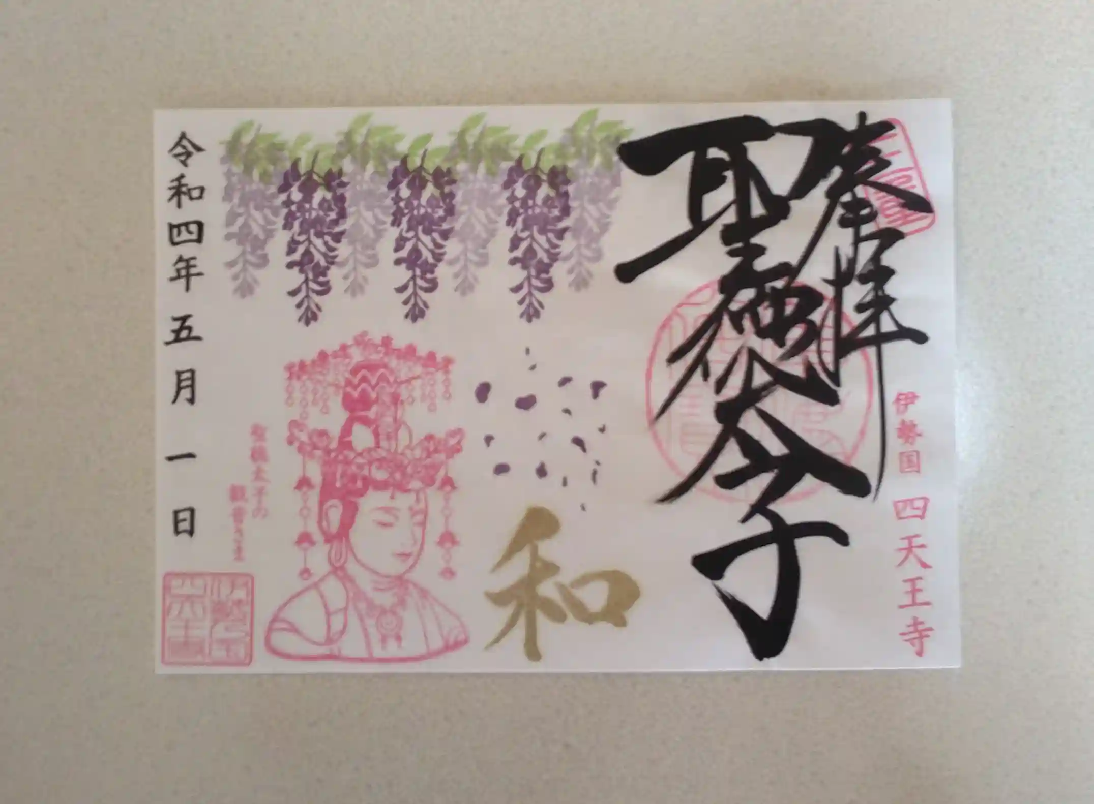 5月聖徳太子1400年限定御朱印「藤の花と観音さま」を郵送にて授かりました(*^^*)