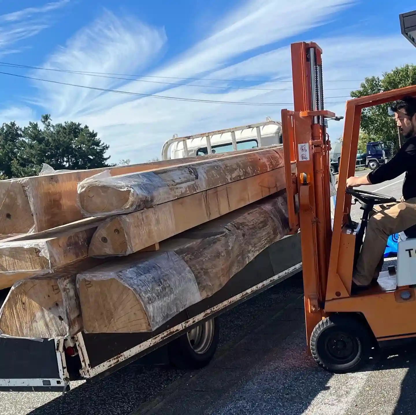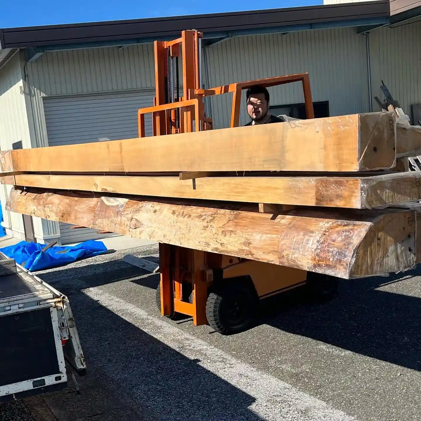 「木曽ヒノキを製材のために木材を運びました」と冨田仏師より連絡いただきました。