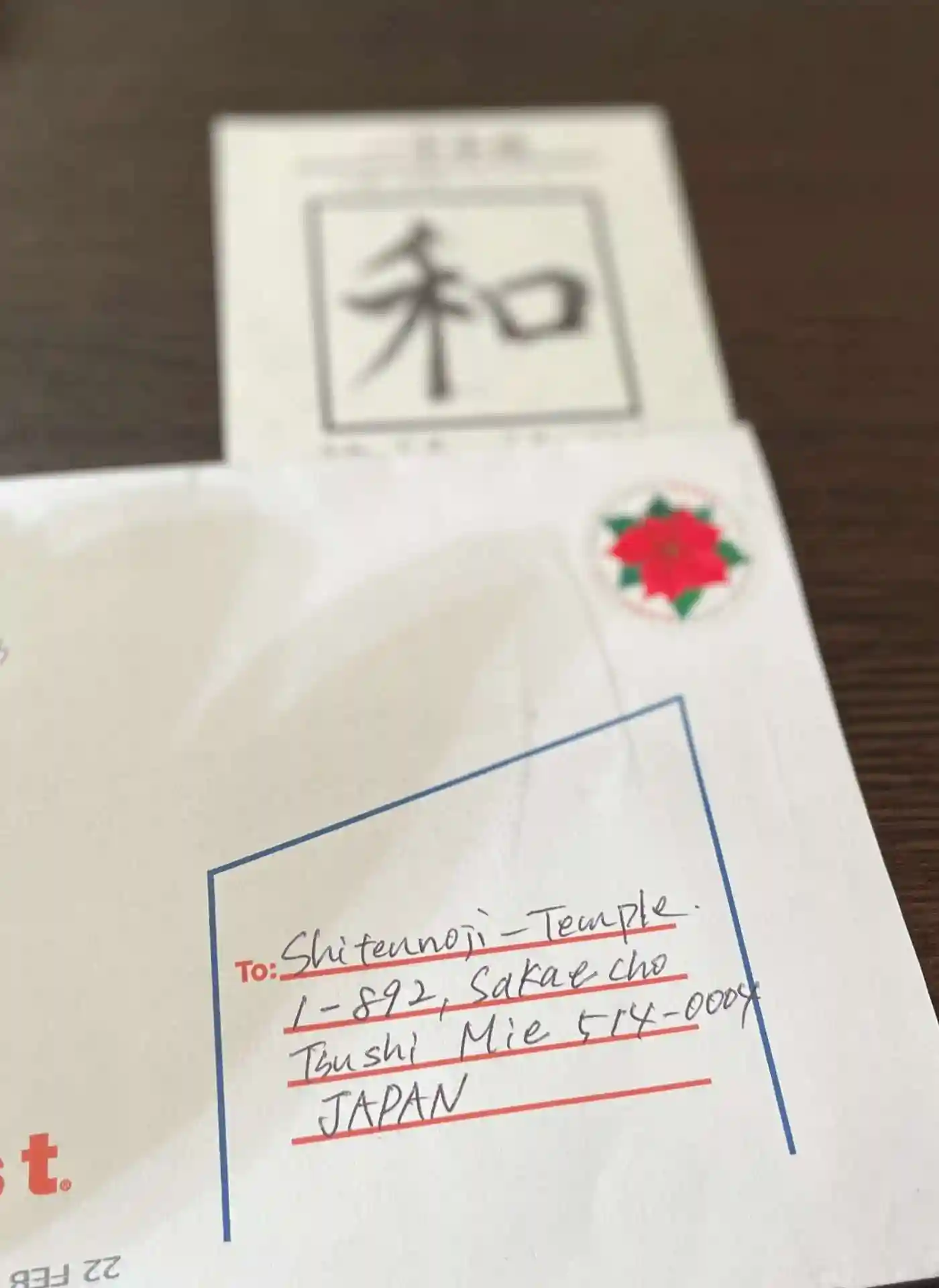 アメリカ🇺🇸ロサンゼルスから一文字写経が届きました。