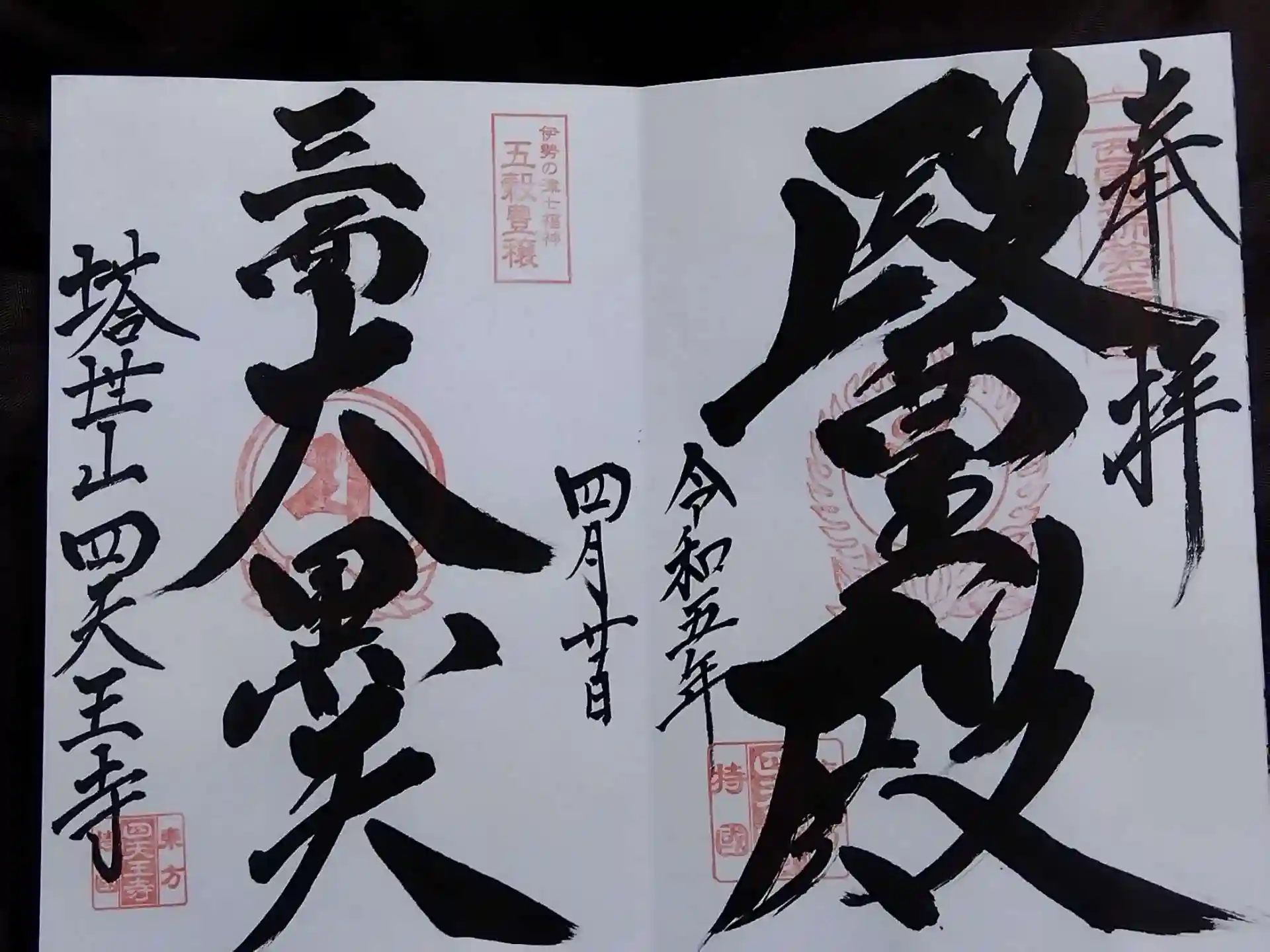 全て直書きにて醫王殿と三面大黒天、4月限定「桜と観音さま」御朱印をいただきました🖌️
