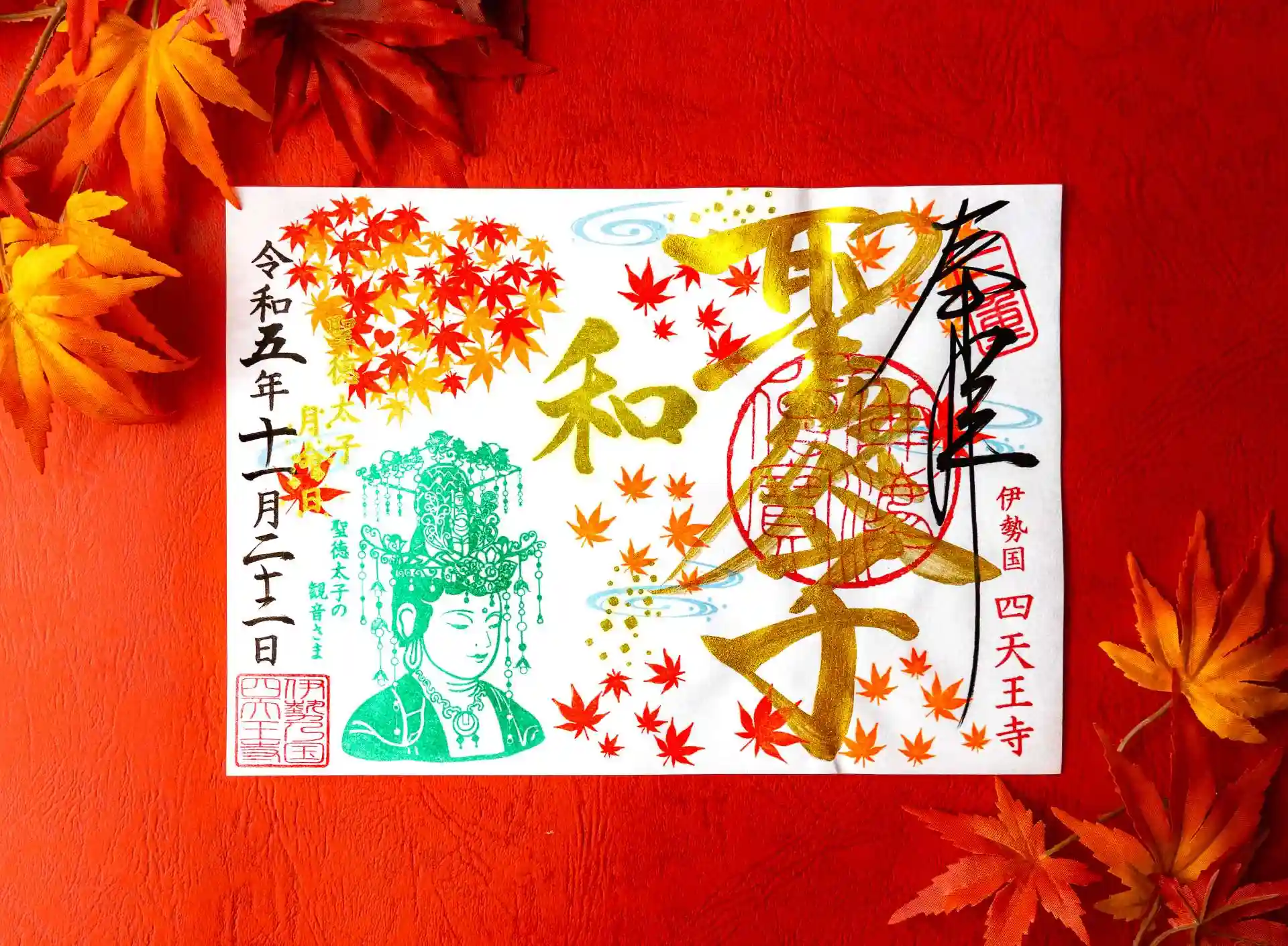 11月22日限定 金文字の「もみじと観音さま」と平和祈願法要(どなたでも参加可)