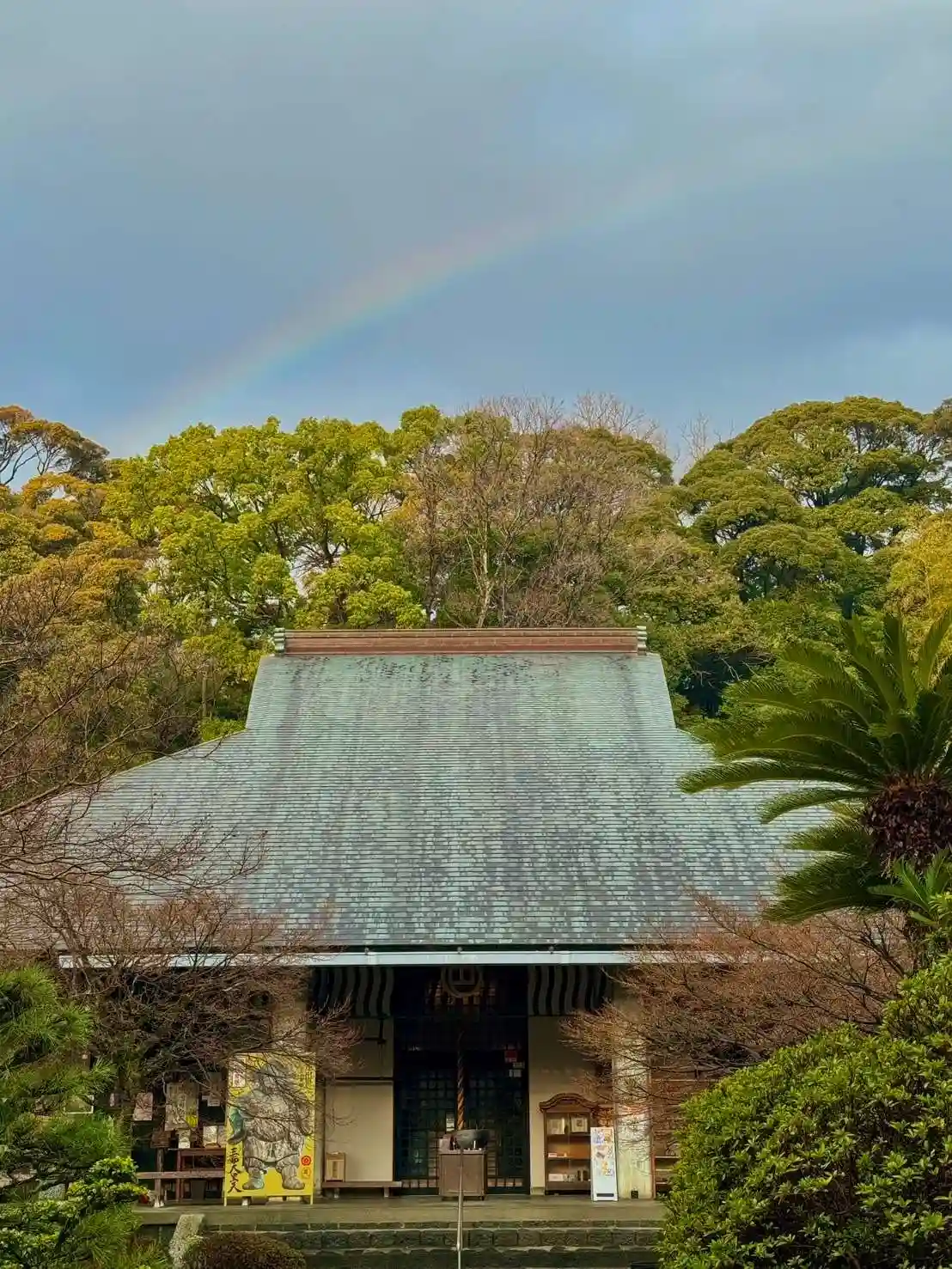 今朝は本堂の屋根に虹が架かりました。