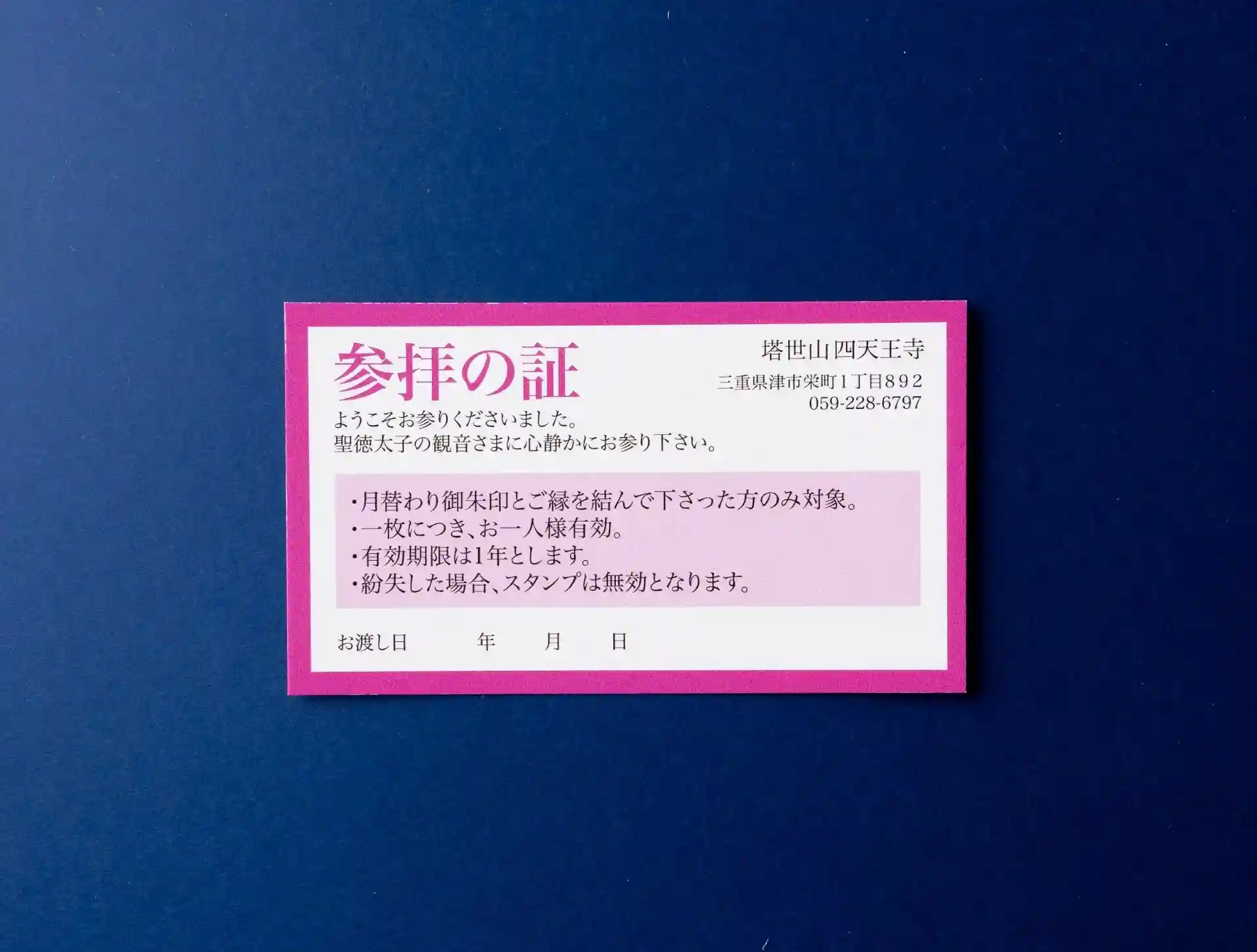 新たにスタートした四天王寺参拝カードのご案内です。