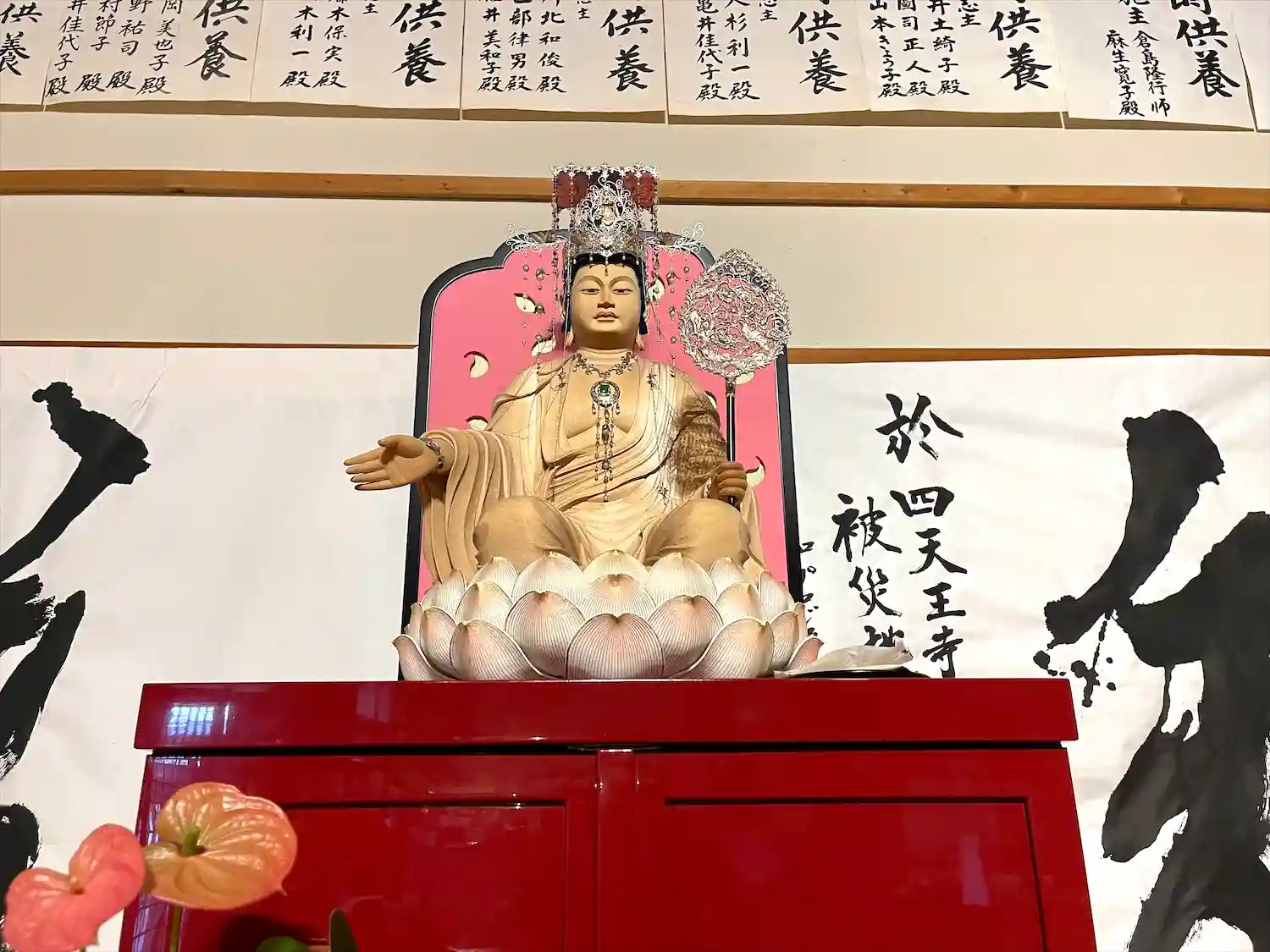 先月までのお参りの際は、薬師如来様の厨子にアクリル板が設置されていましたが、無くなっていました。今まではアクリル板に光が反射して見づらい時もありましたが、綺麗なお姿が拝見できました。