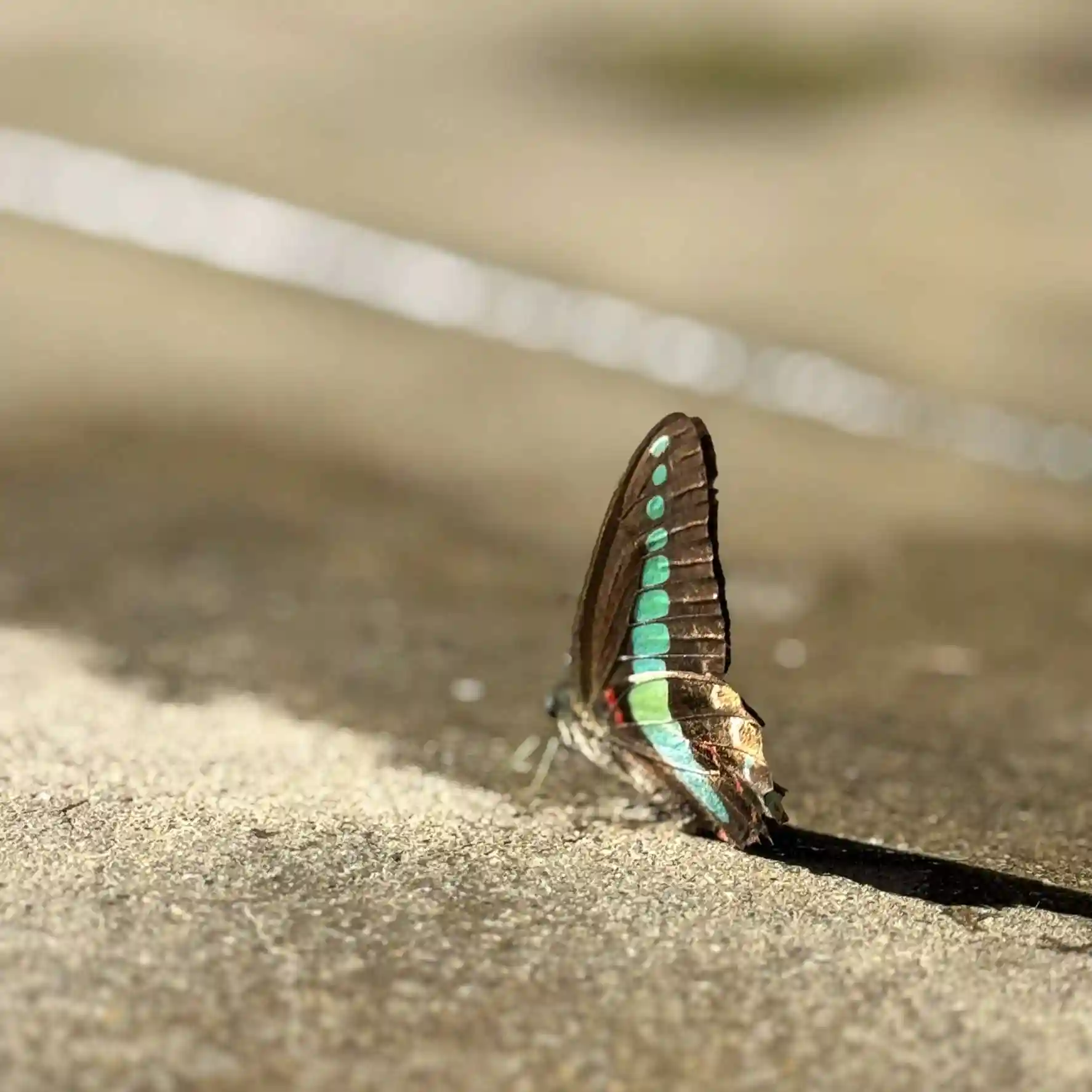 本堂前にアオスジアゲハが舞い、水を飲んでいました。