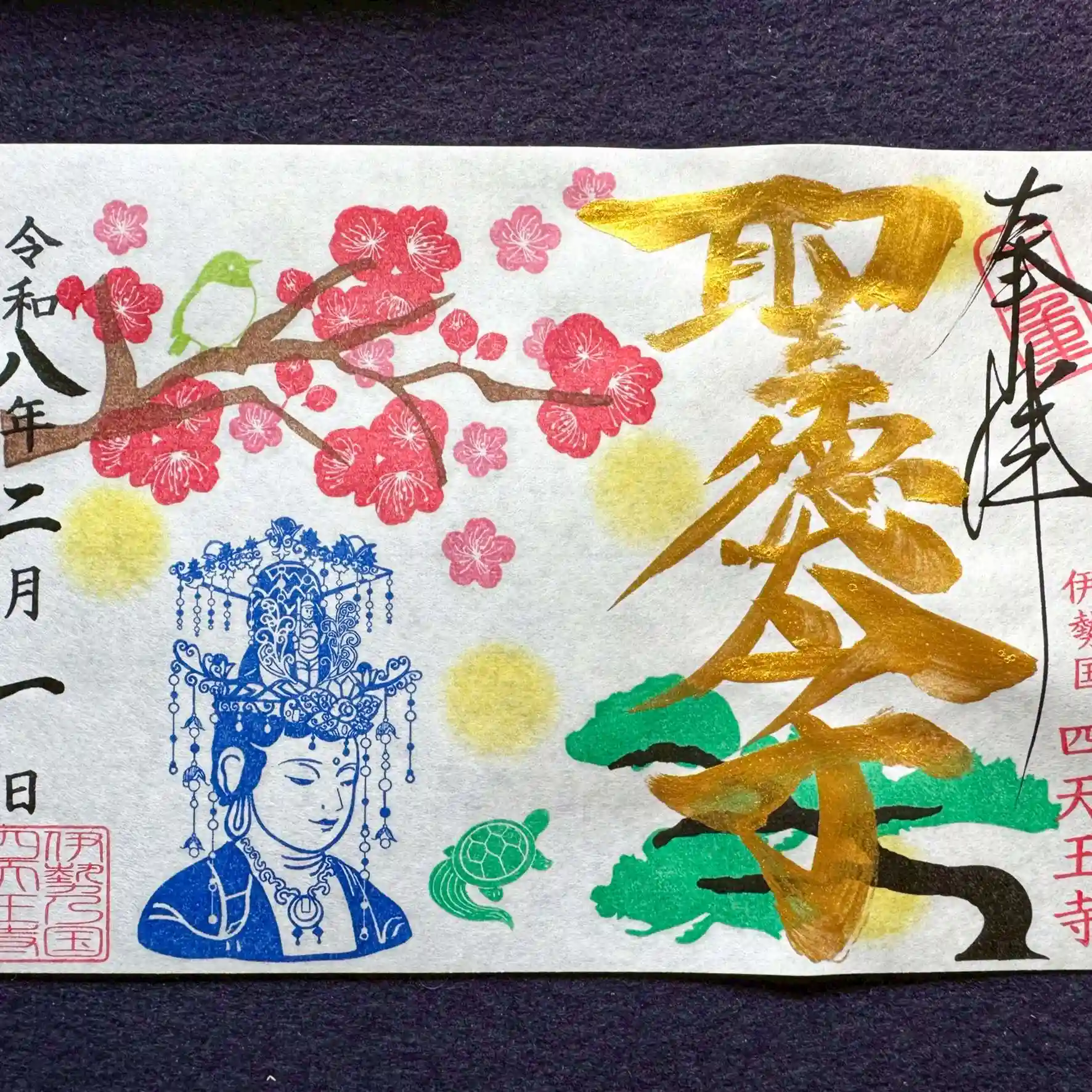 この日だけの開眼特別御朱印や、1年に1回だけの「聖徳太子御命日」特別印入りの2月限定御朱印(書き置きのみ)もあります。