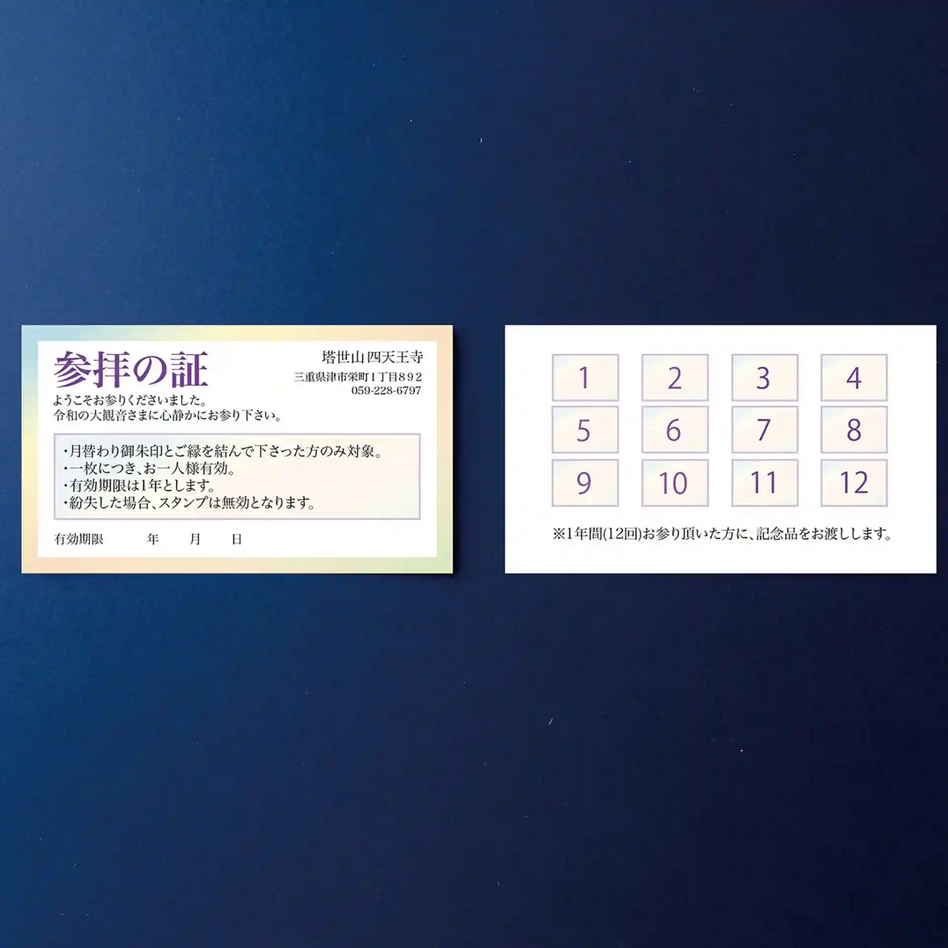 4月から始まる四天王寺参拝カードのご案内です。