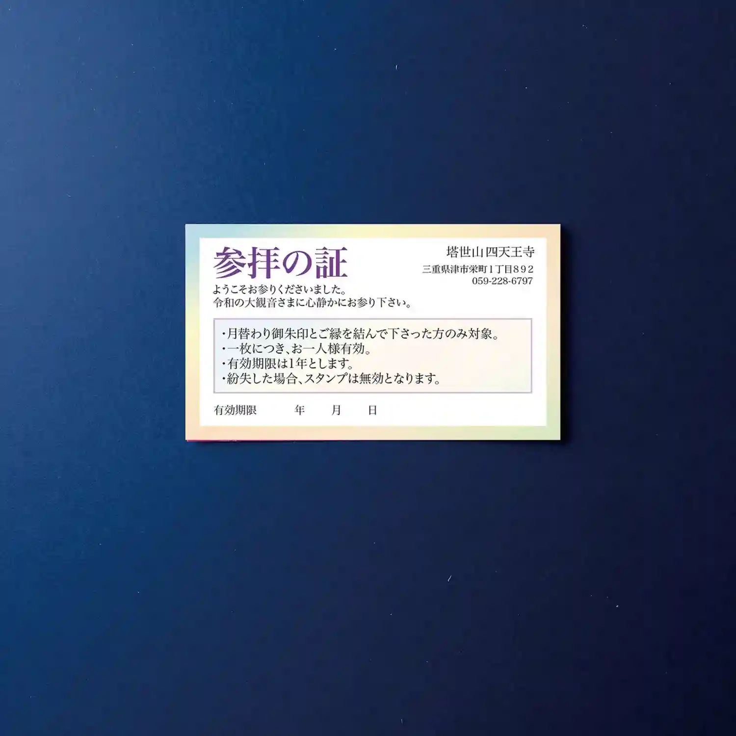 4月から始まる四天王寺参拝カードのご案内です。