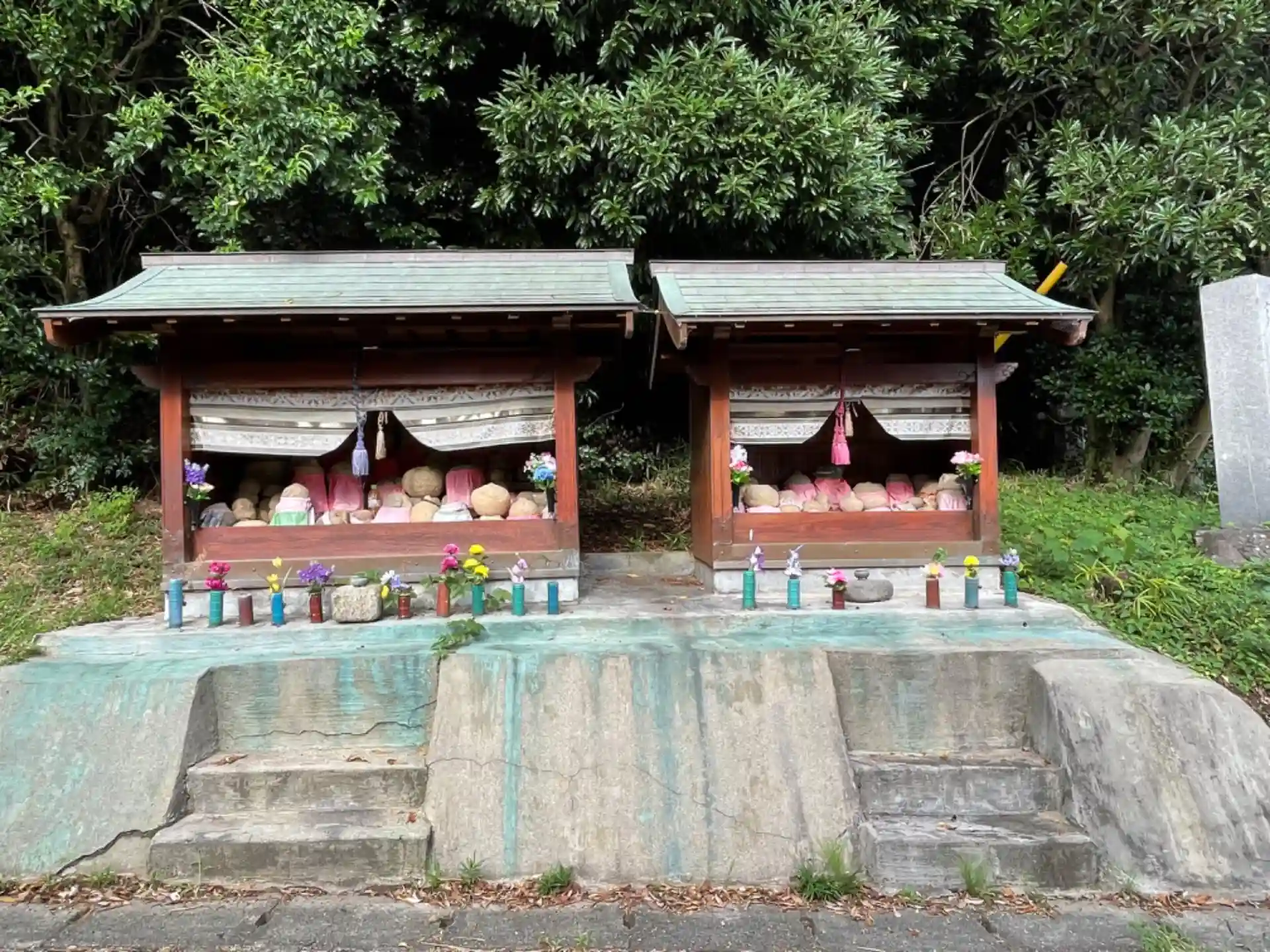 社標の隣にお地蔵さま。こちらは綺麗なお花が供えてあり、近所の方に大事にされている事がわかります。