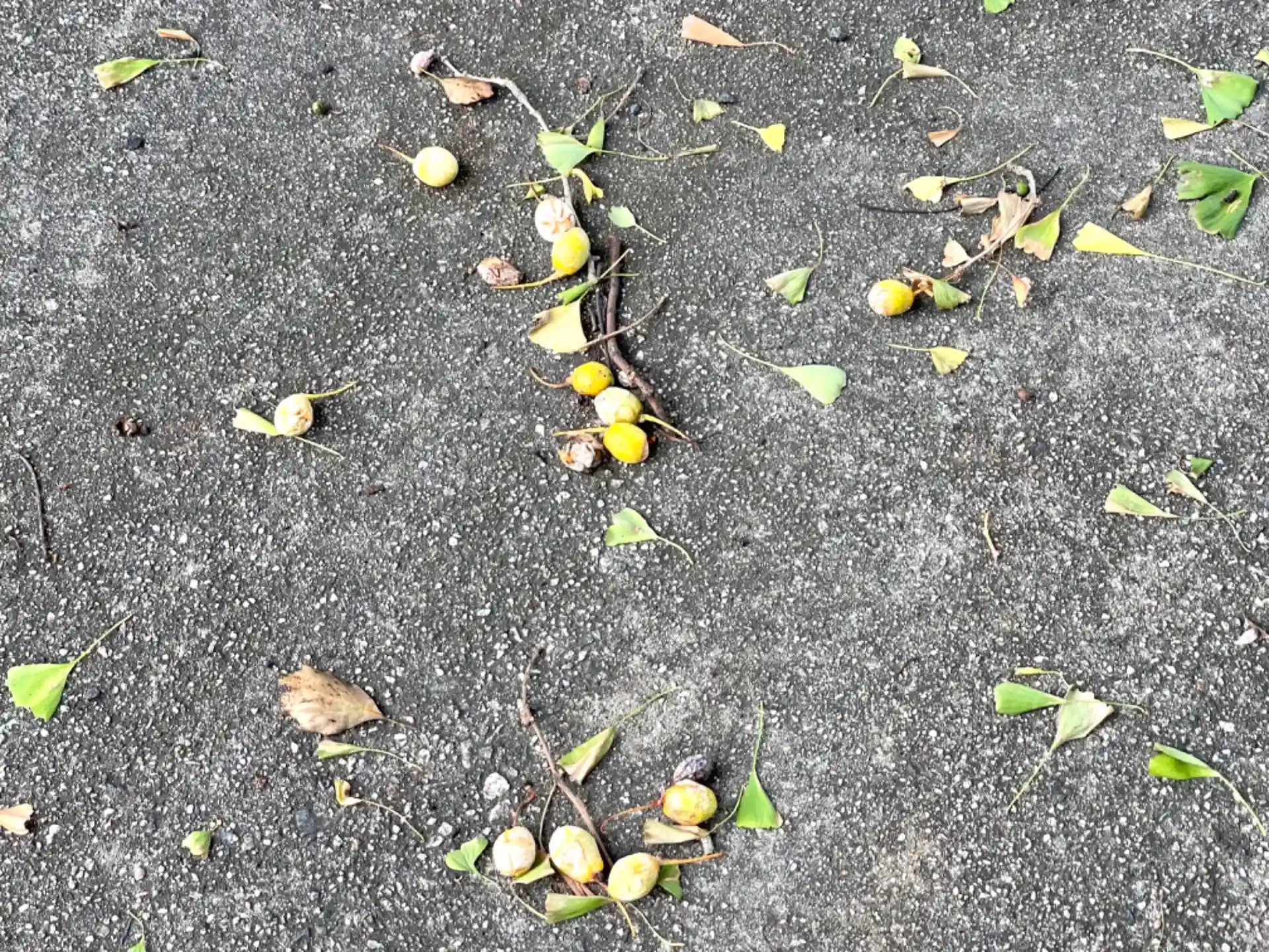鳥居の横に大きな銀杏の木があり、銀杏がたくさん落ちていました。