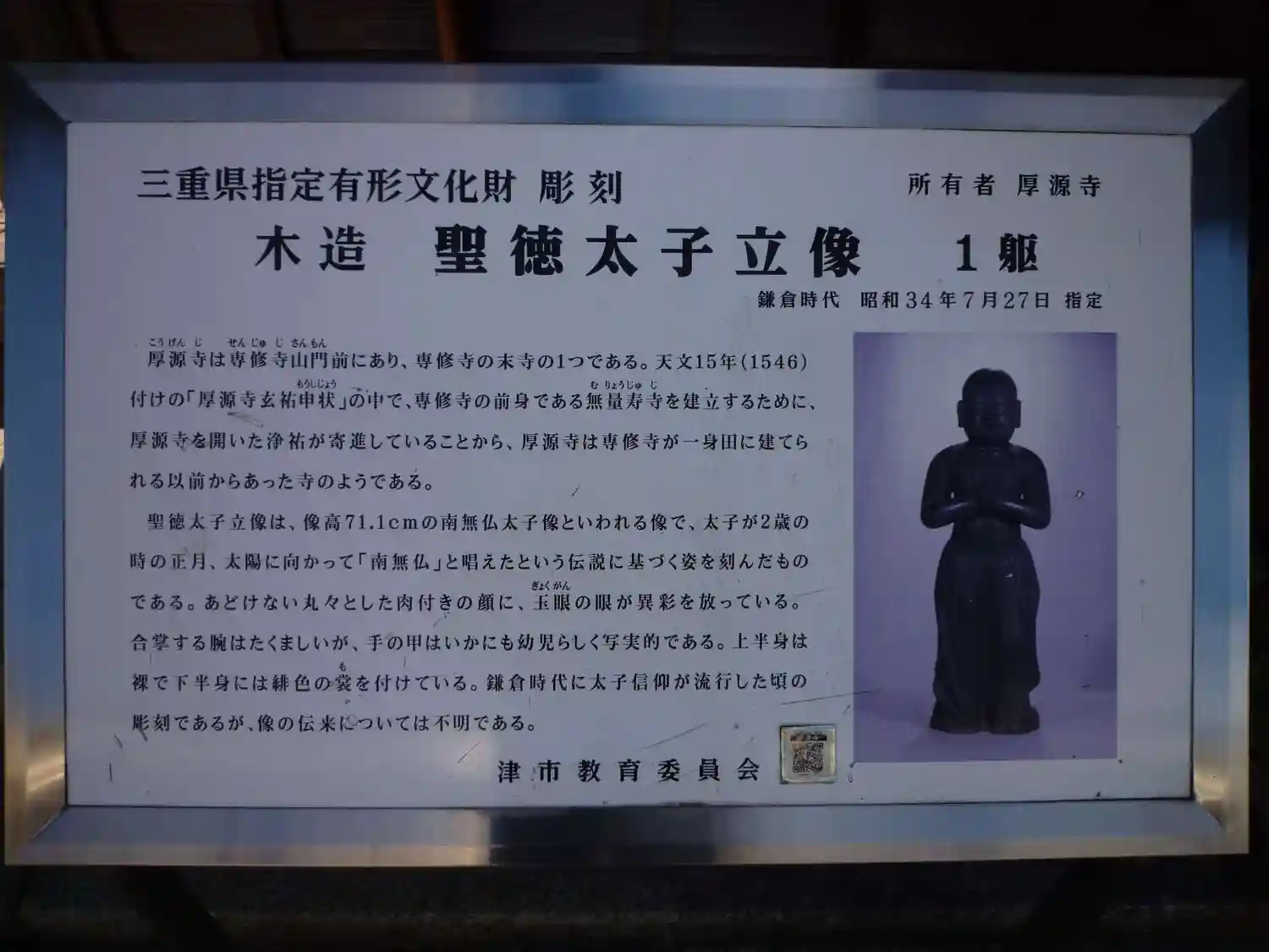 聖徳太子立像の説明板