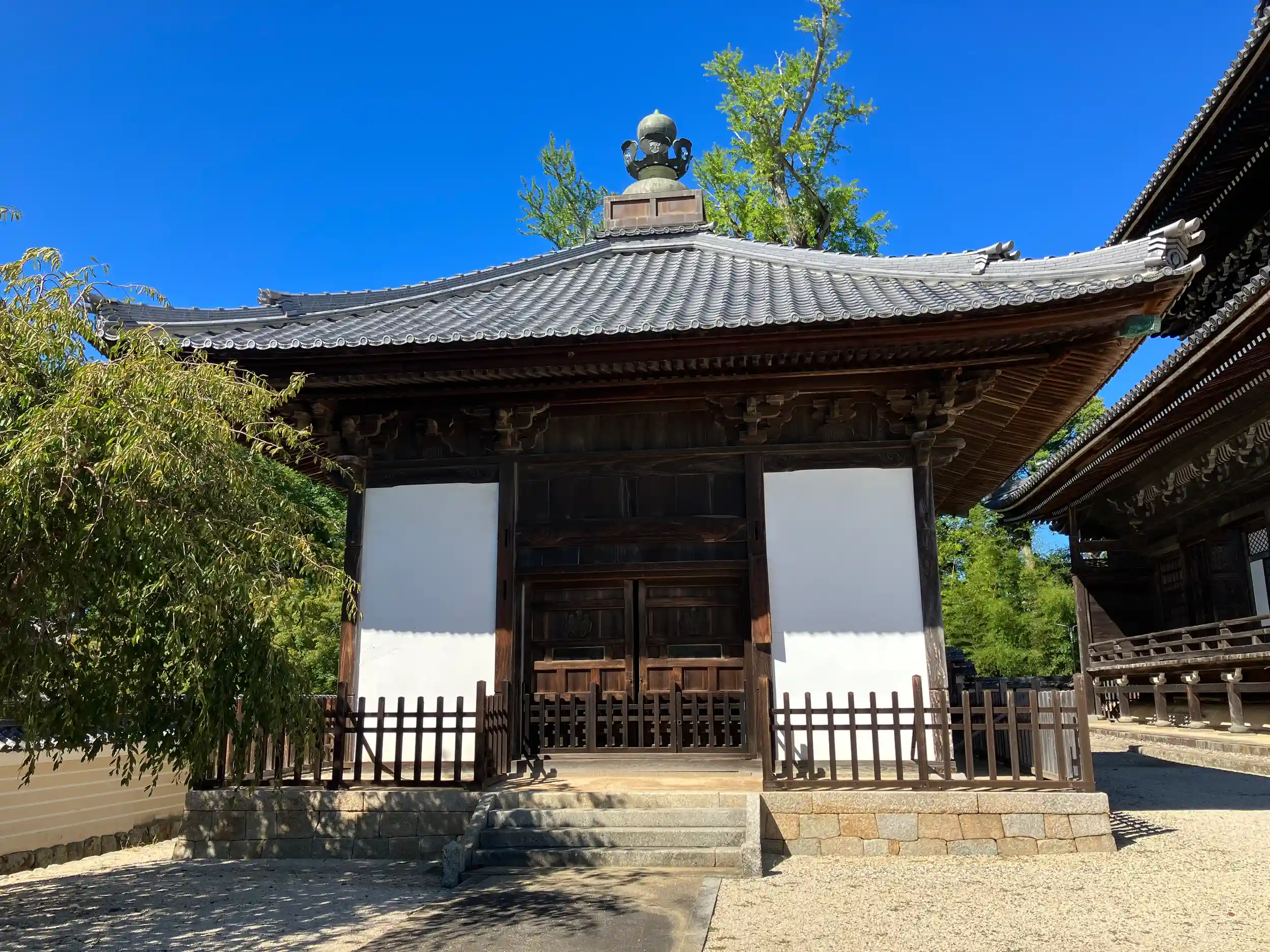 本堂にあたる如来堂は1748年の再建。如来堂と御影堂は国宝指定されている。