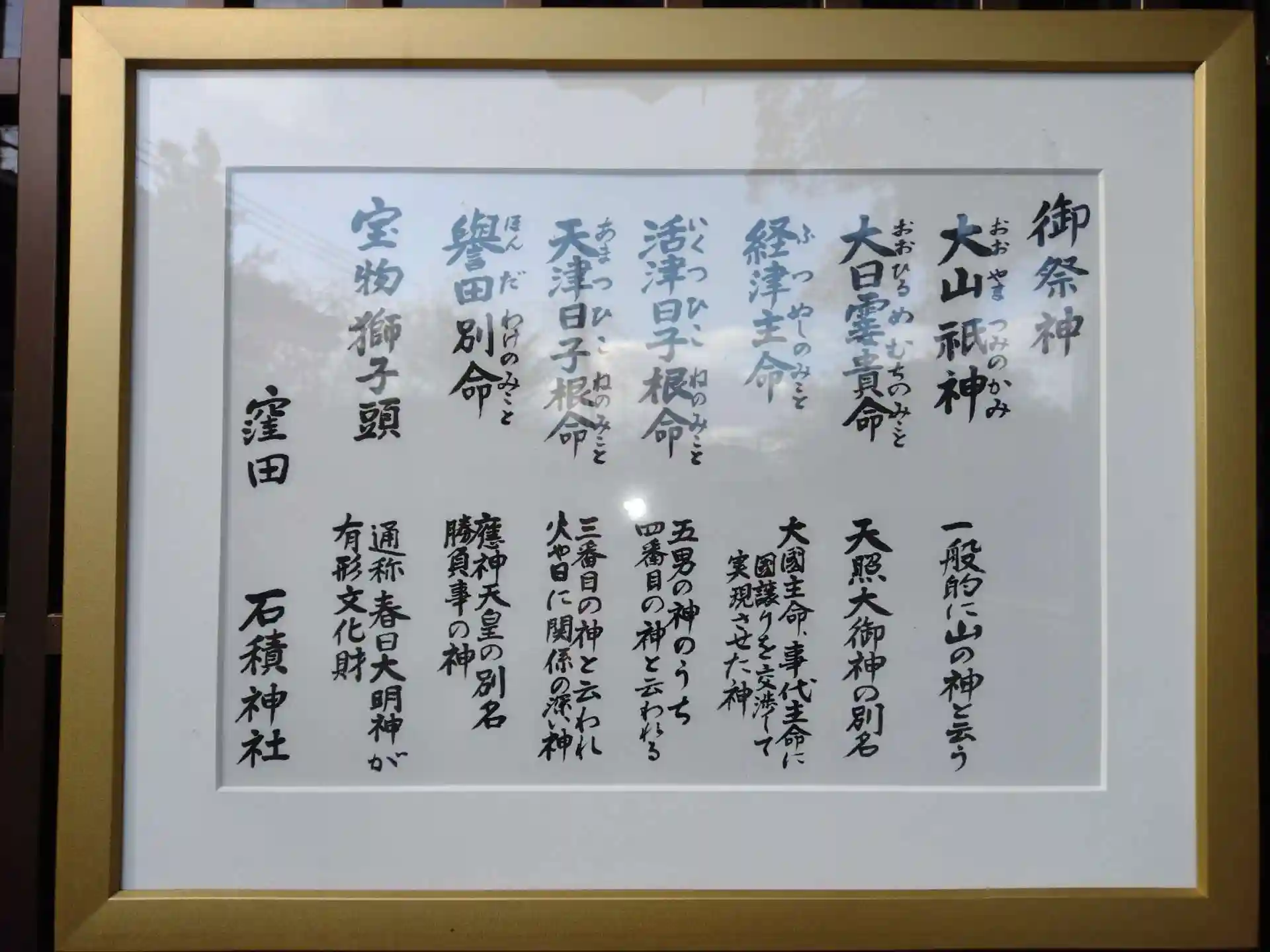 御祭神名の書かれた額縁
