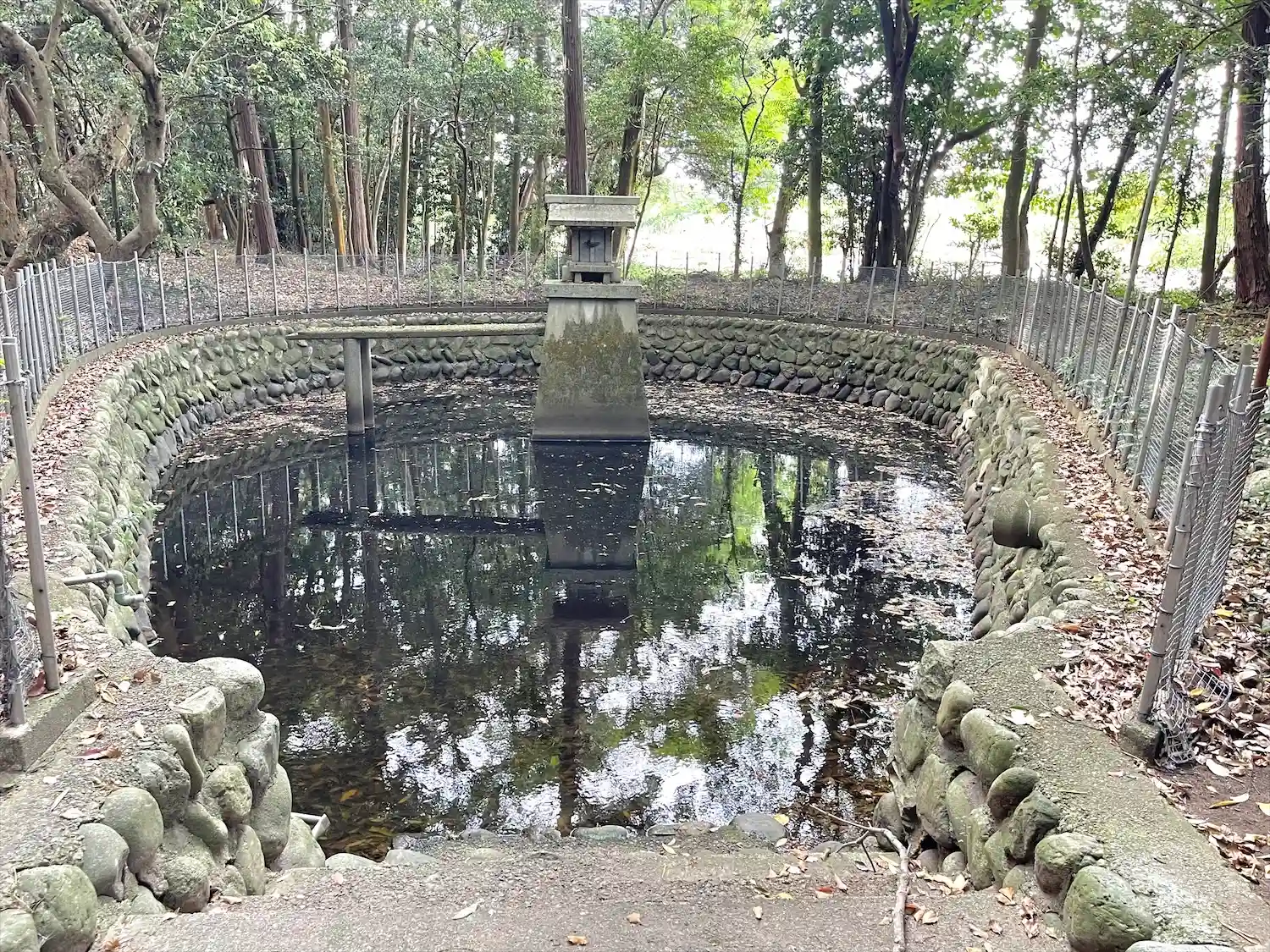 社殿の裏手に池があり、市杵島姫…