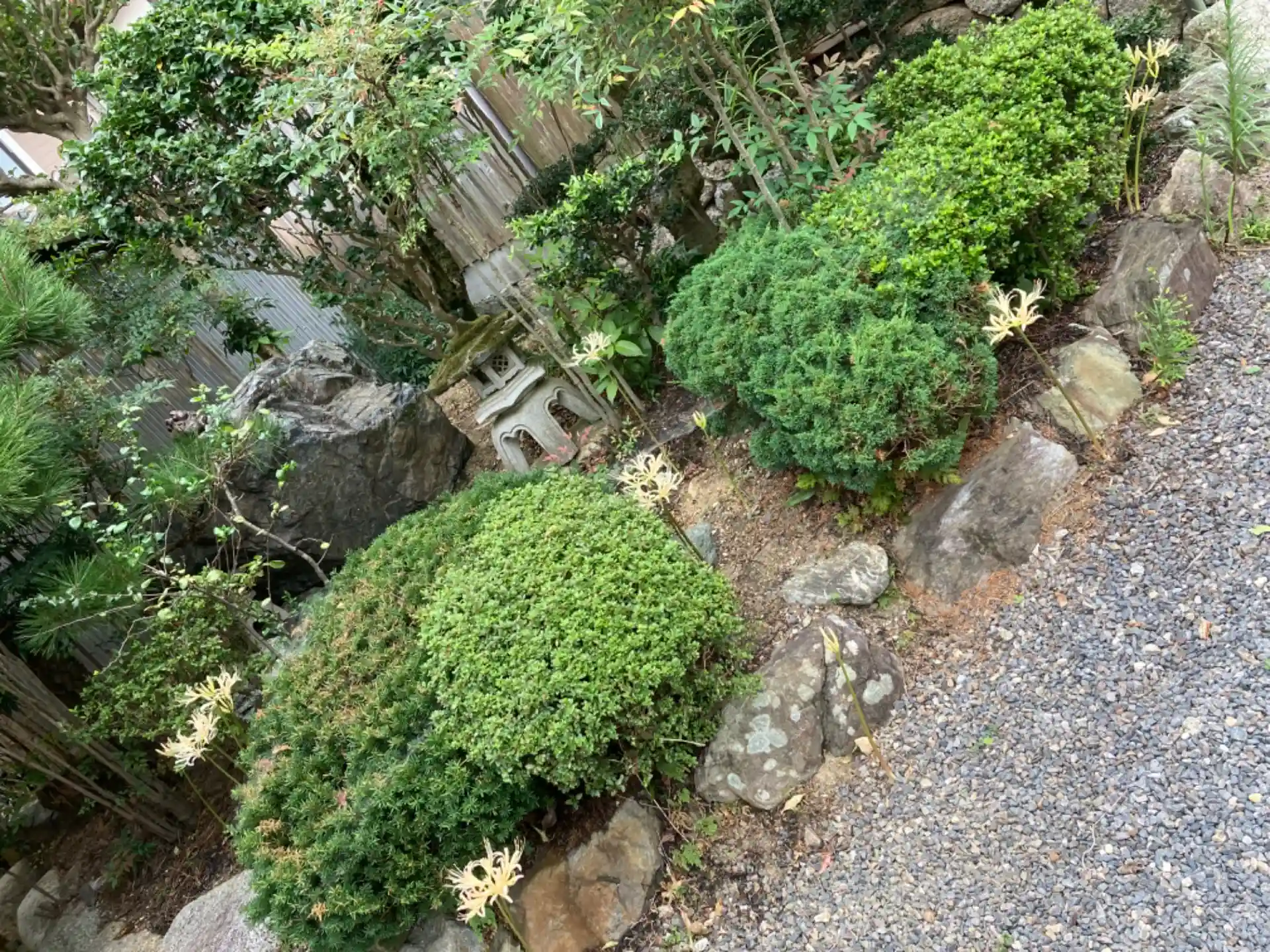 お寺の山門と境内に白い彼岸花が咲き始めました☺️