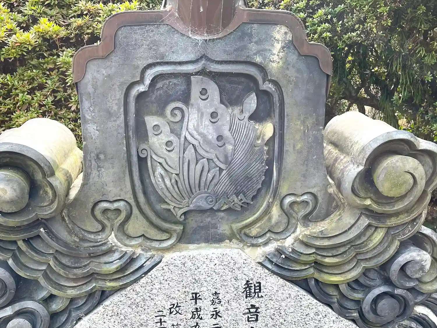 観音堂の揚羽蝶の家紋の鬼瓦
