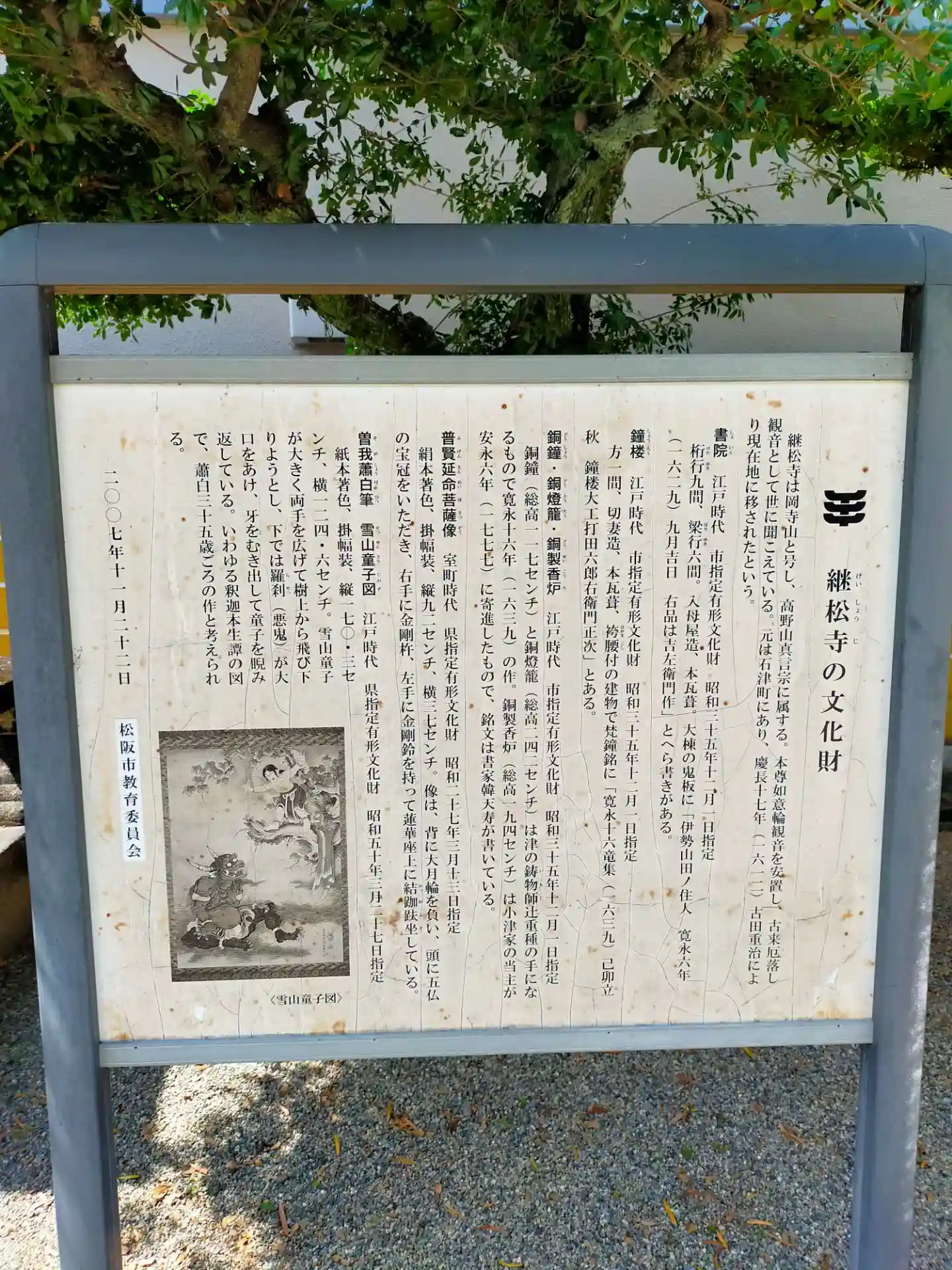 近隣です。高野山真言宗 岡寺山 継松寺さんです。御本尊は、如意輪観世音菩薩です。743年、聖武天皇の勅願により、行基が創建しています。1612年より現地です。三面大黒天さんもいらっしゃりますよ。