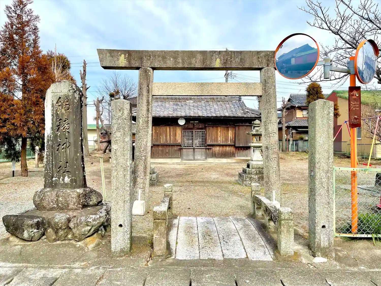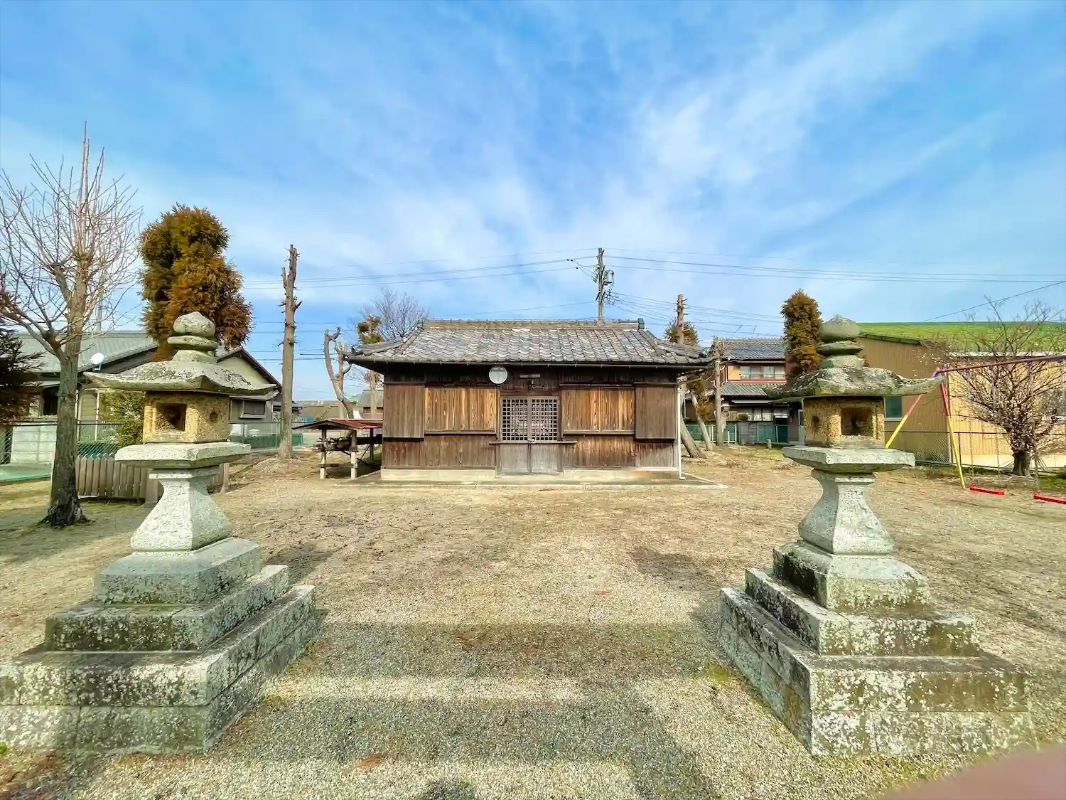 境内が公園になっていて、ブランコや滑り台がありました。