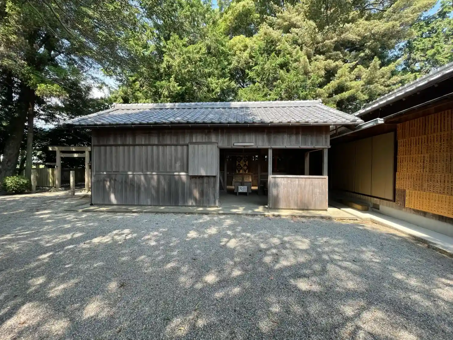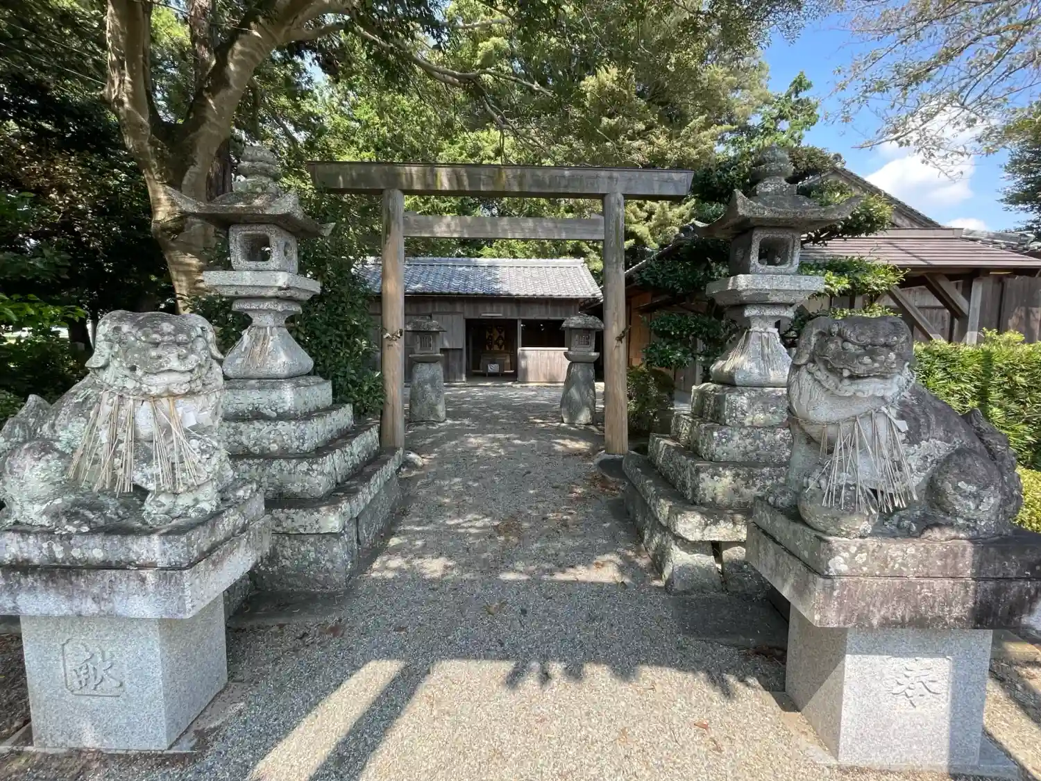 伊勢自動車道松阪インター出口から最初の信号を右折したアクセス道路の近くにある村社。目印はファミマが…