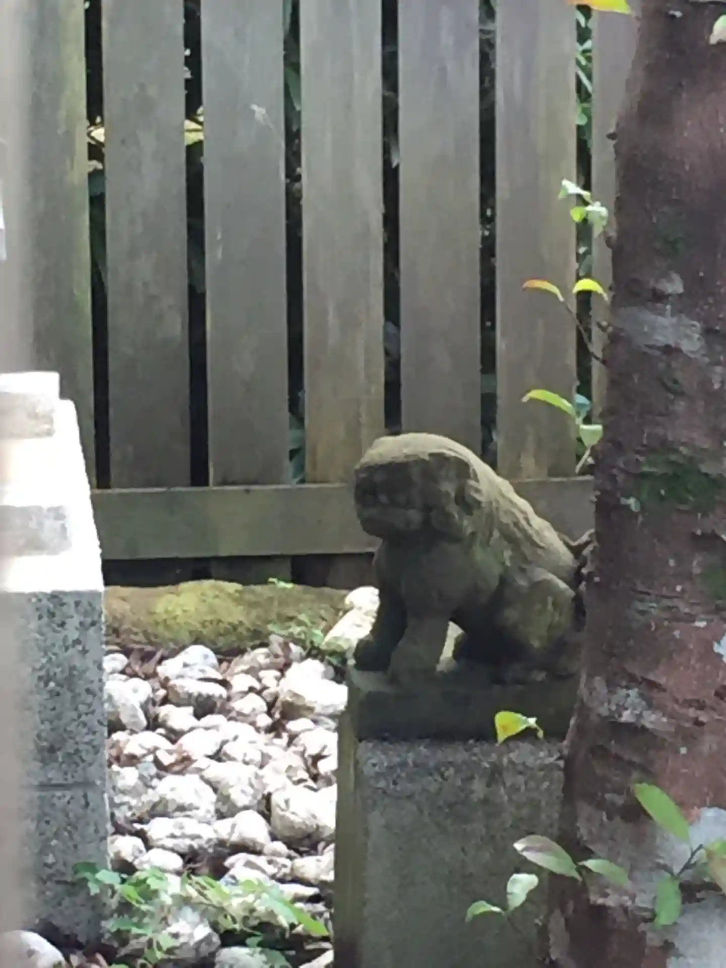 小さい身体を踏ん張ってお役目を果たしている健気な狛犬さんですね。