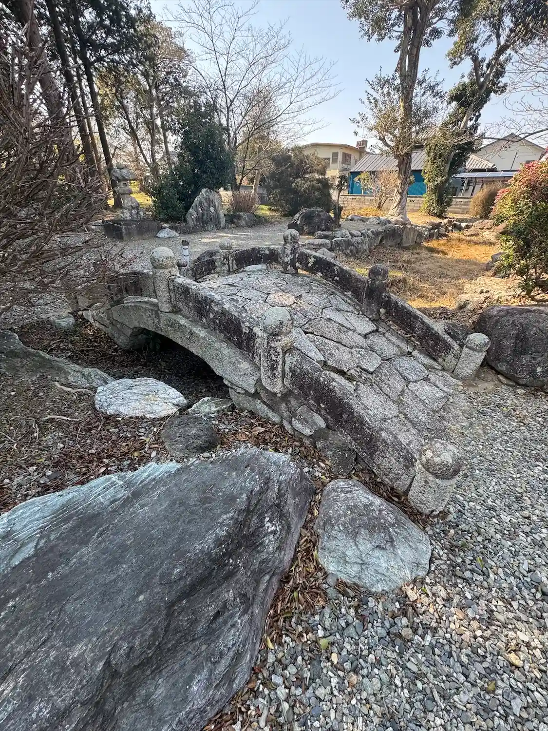 参道口に石造太鼓橋がある