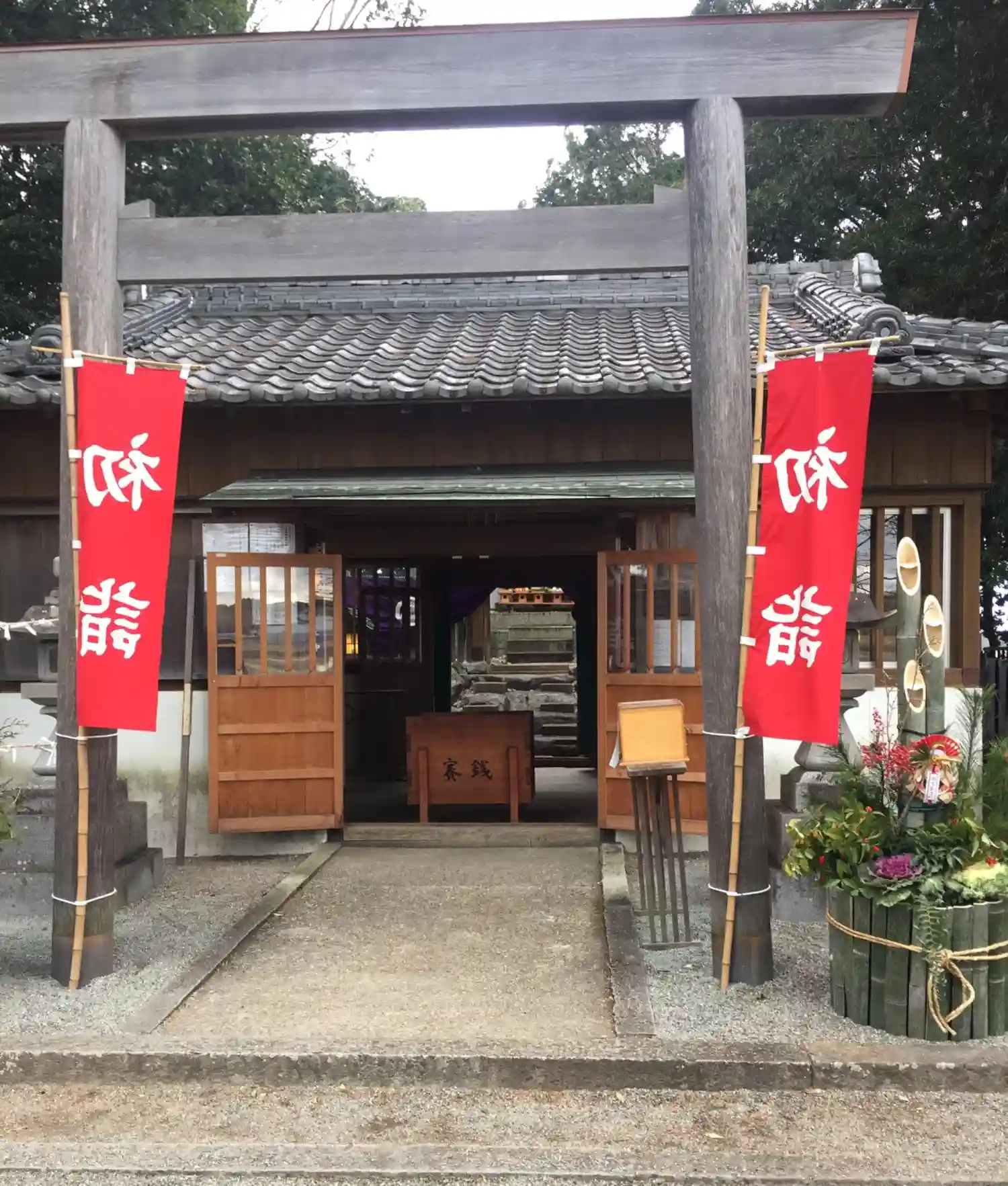 いつもはひっそりと静かな神社が、門松で華やかに彩られていました。