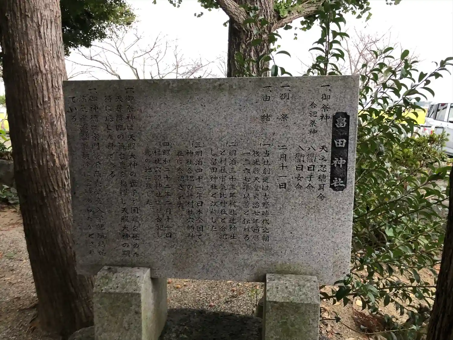 畠田神社は『延喜式』神名帳に名前があるのですが、比定社には挙げられていません。これは鎮座地が多気郡ではないことに由来すると思われます。