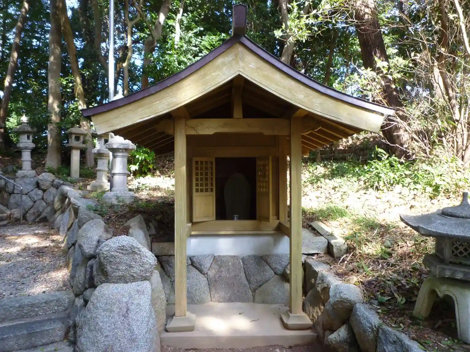 県道37号線を松阪方面に進み、蓑村東の交差点を左折すると左手に参道が見えてくる、近くに駐車できそう…