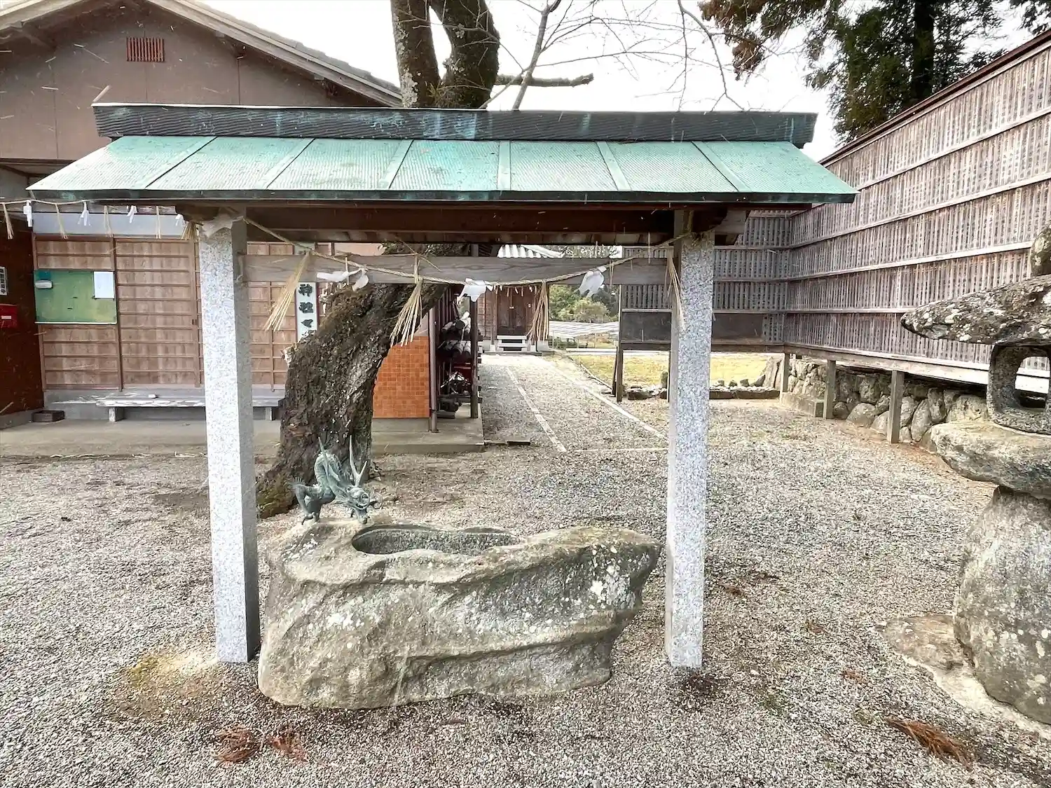 鳥居の横、御神木の根元に伊勢白龍大明神が祀られています