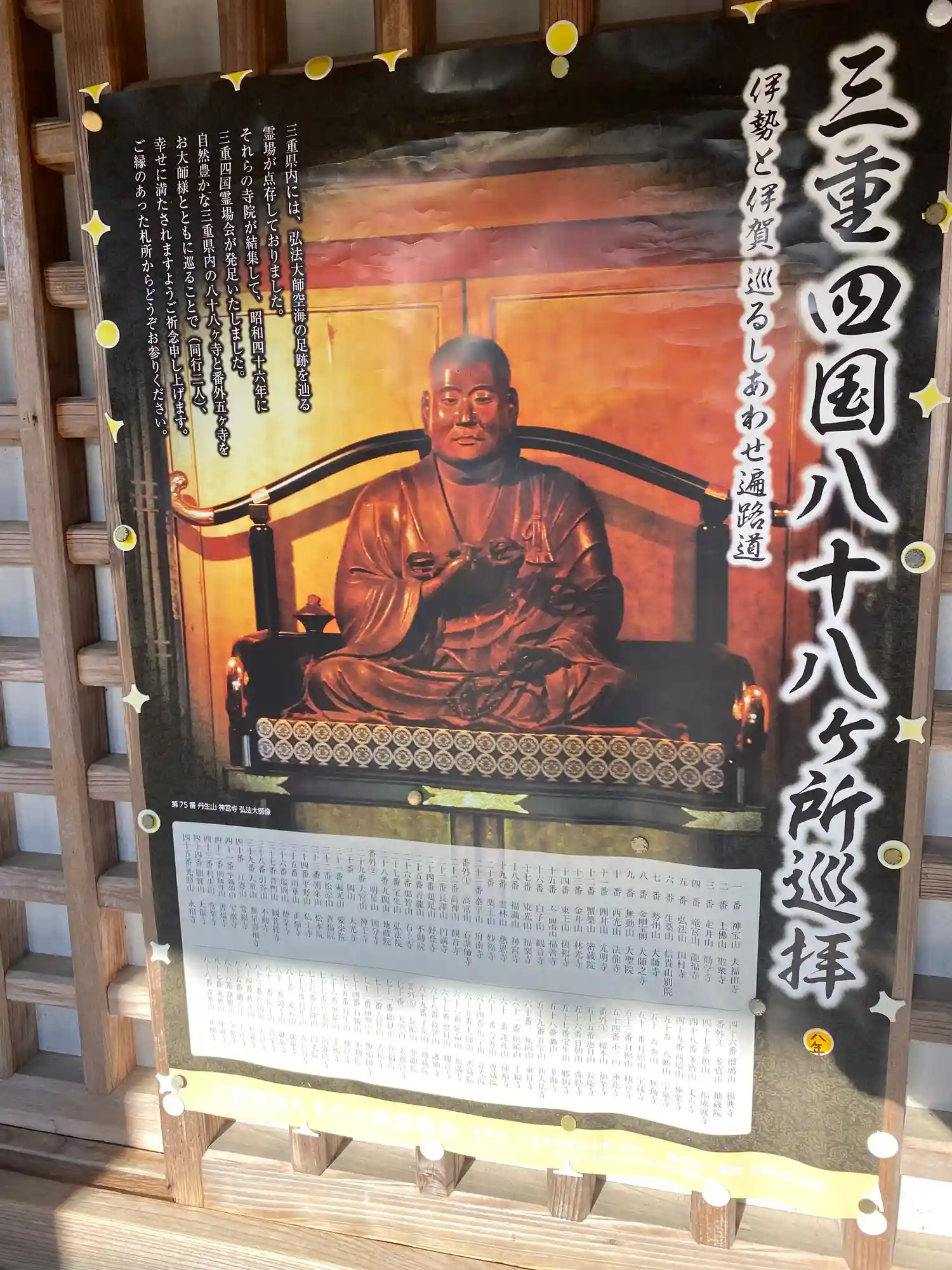 | 三重四国八十八箇所 第74番 | 御真言: のうまくさんまんだ ばざらだん せんだ かま ろしゃだ そわたや うんたらた かんまん |