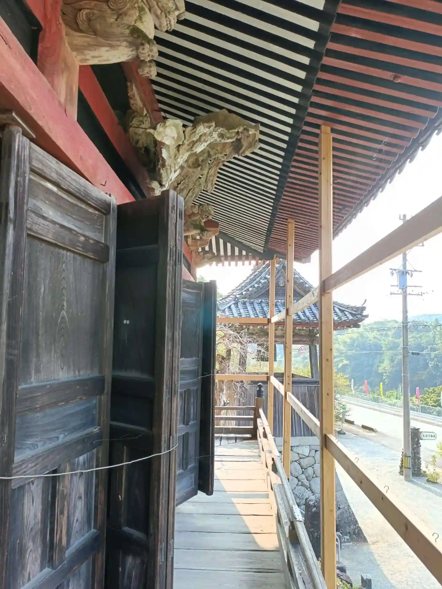 国道沿いにあるお寺で、境内に滝があります。