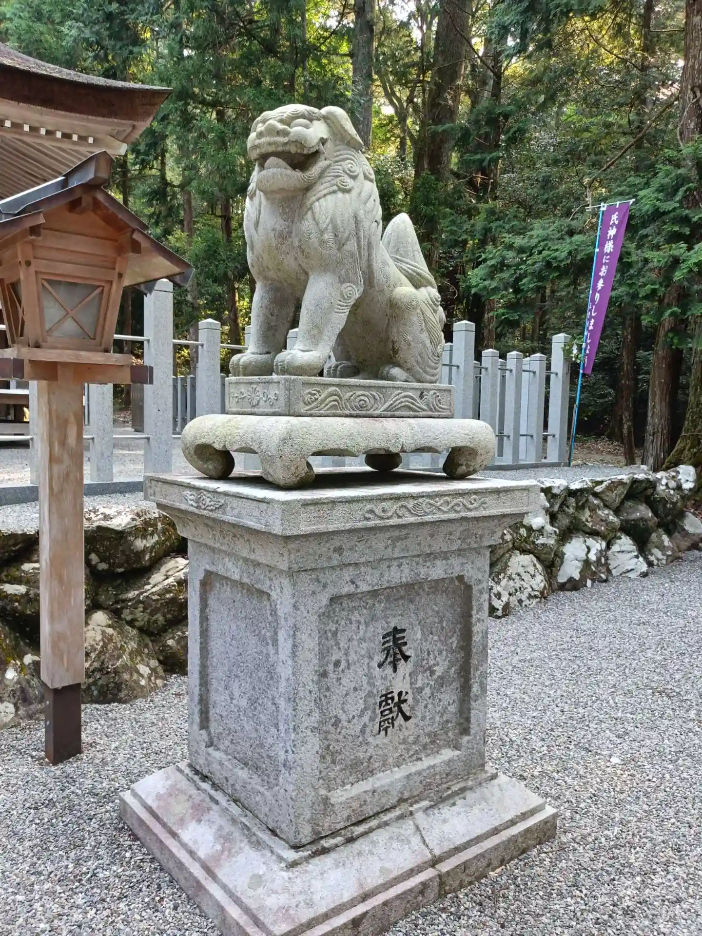 狛犬さんたちは、脚がしっかり太くて、しっぽもふっくらしてちょっと変わった形でした。