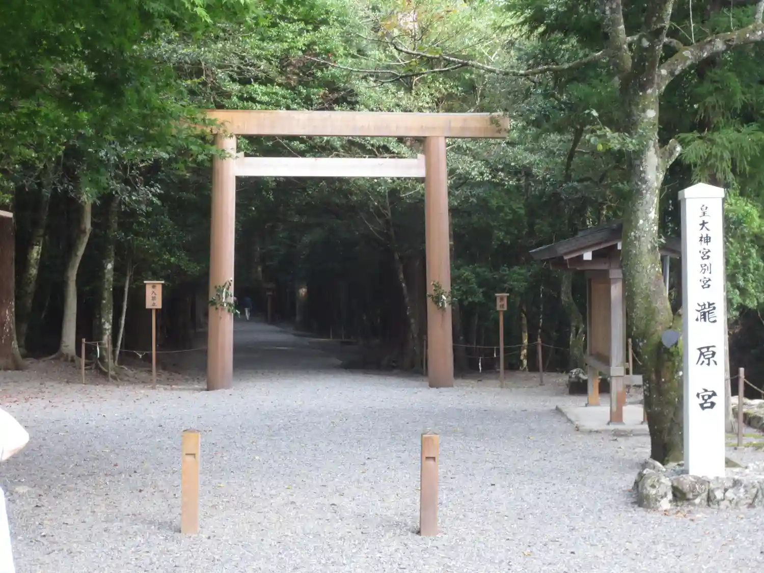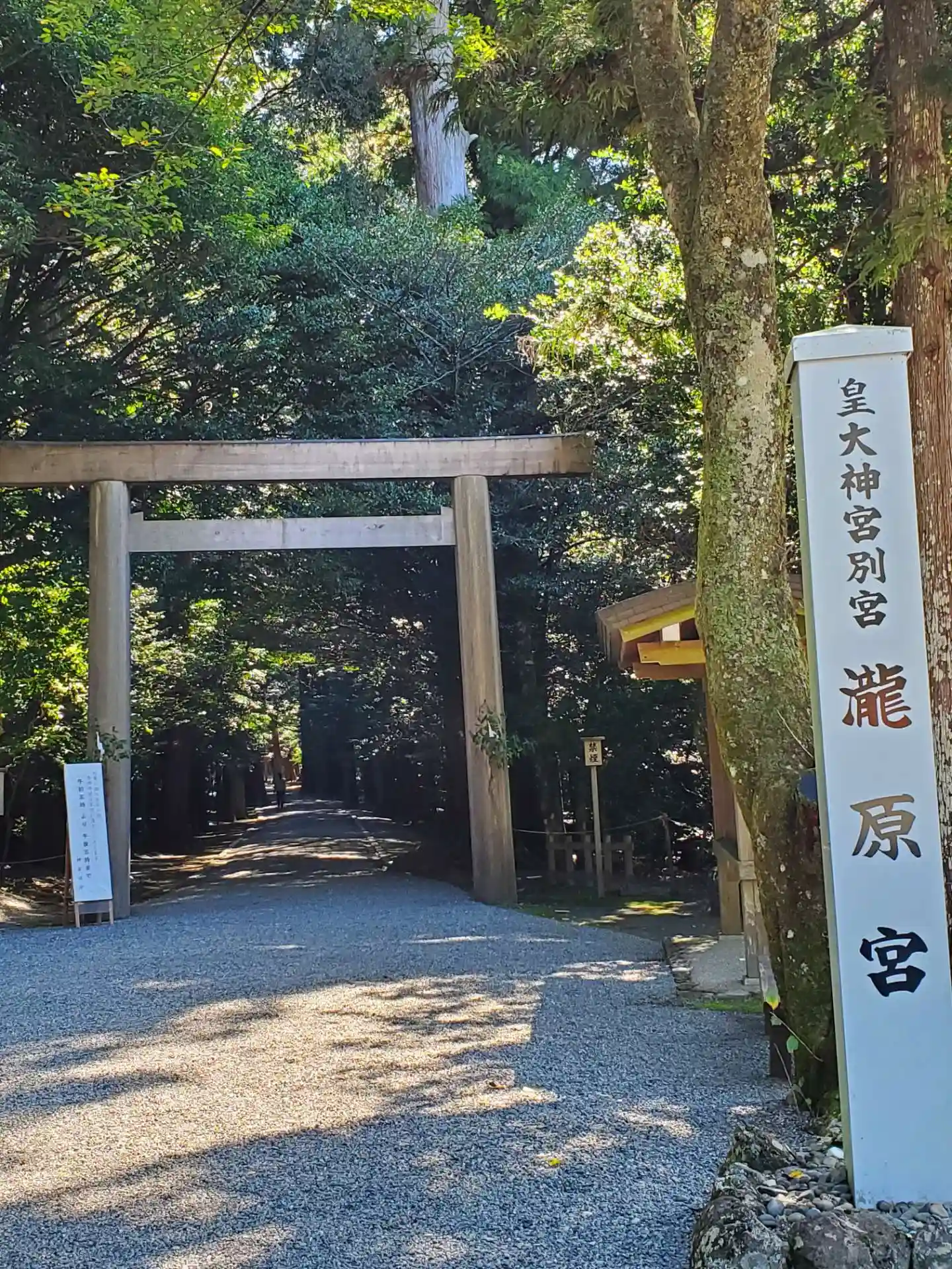 国道42号線上の<瀧原宮>交差点から脇道に逸れ、<道の駅 奥伊勢木つつ木館>の横を過ぎると、公道上にこちらの鳥居がある。