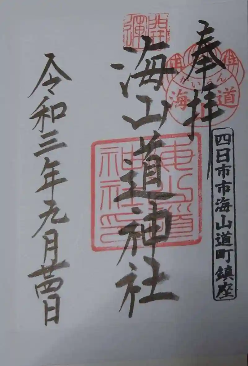 海山道神社で書置きの御朱印を頂きました。