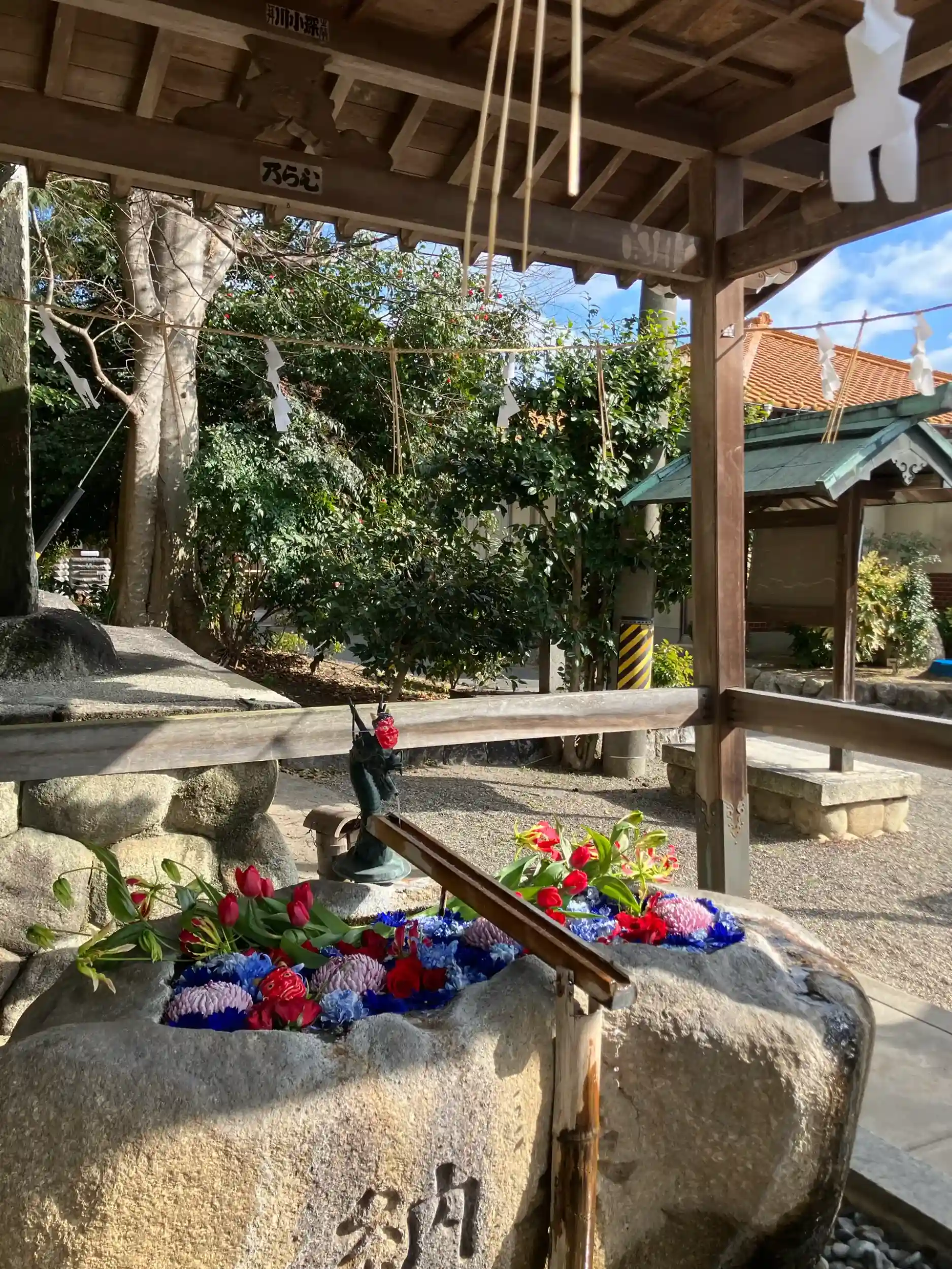 手水舎には綺麗な花が飾られていました。