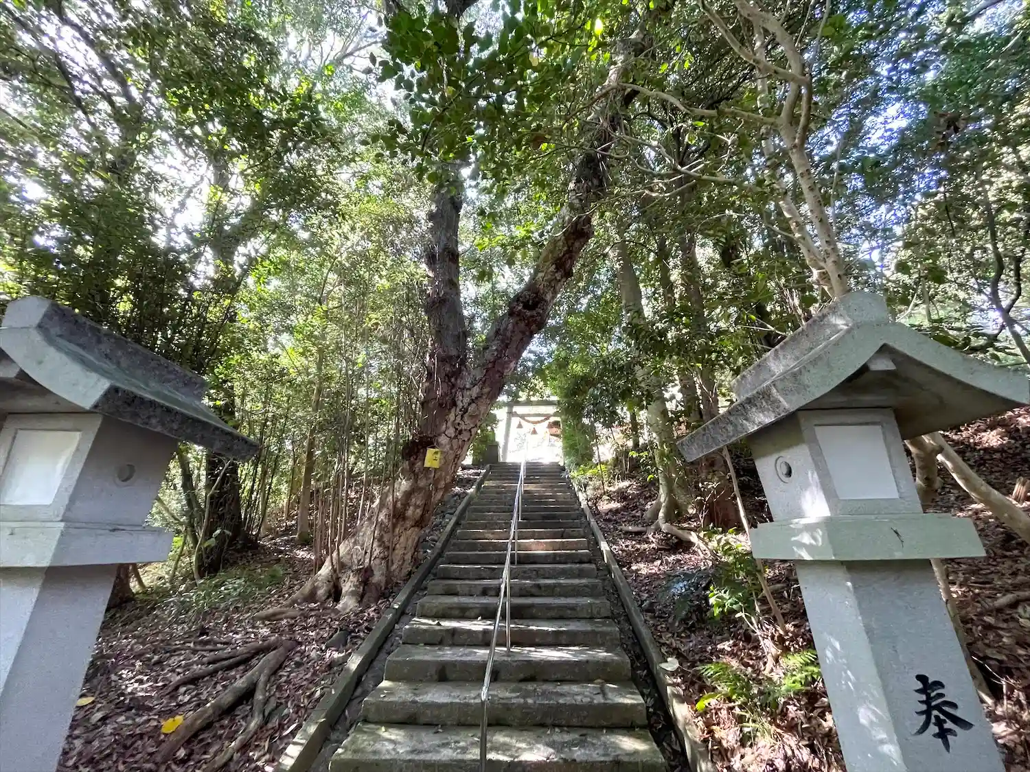 南部丘陵地の登り口あたりに位置しています。参道は階段で両…