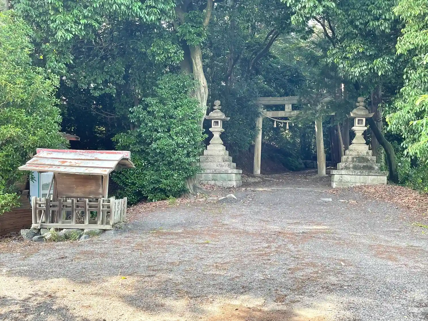 雨の日に訪れると、鳥居から先はの参道は、木々に囲まれ薄暗く寂しいです。