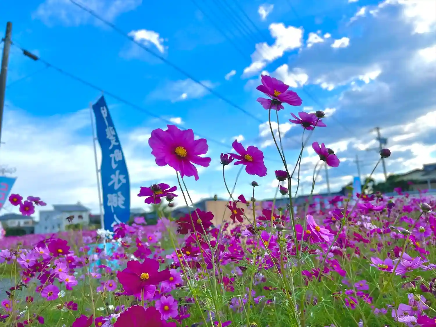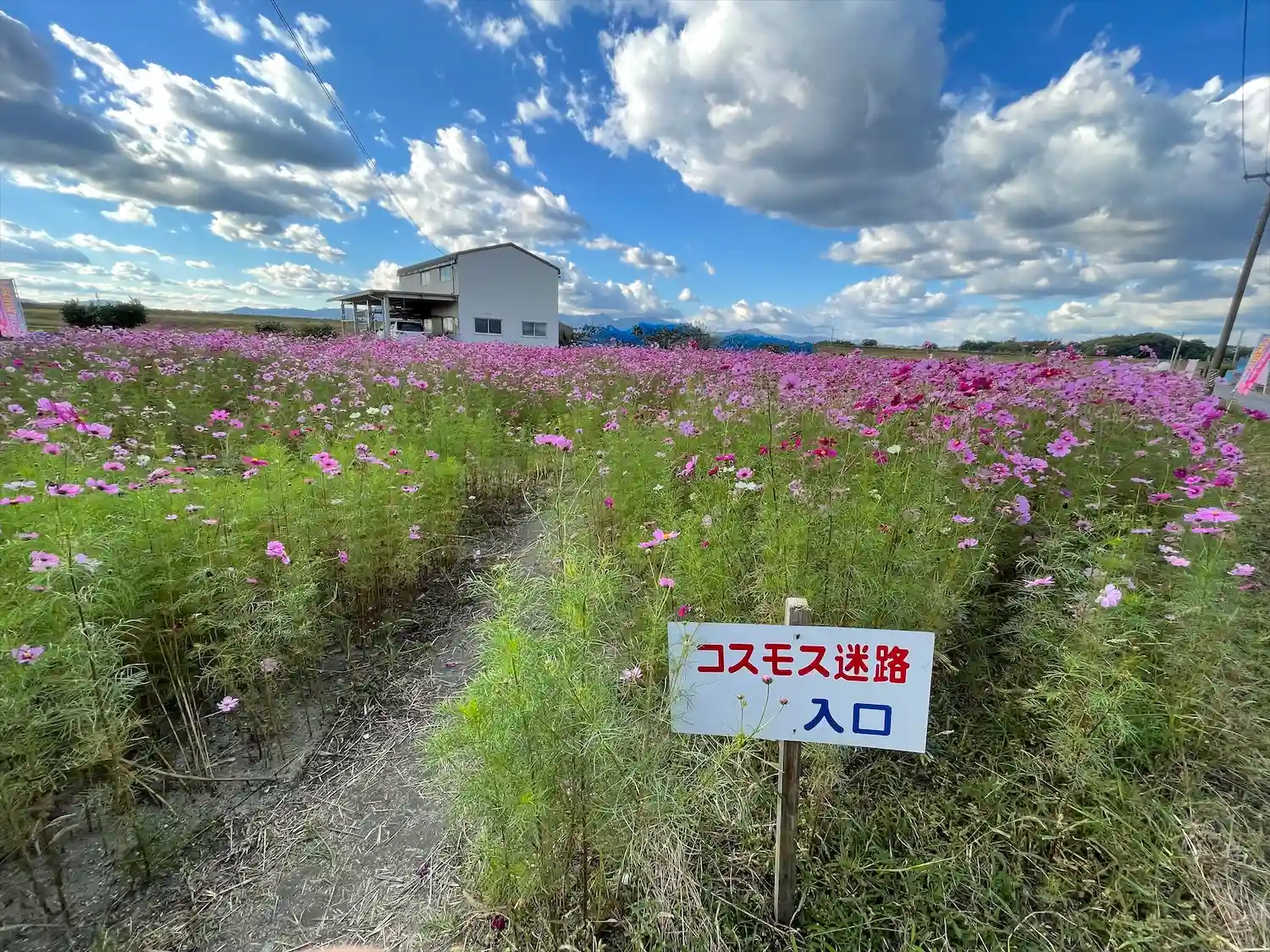 神社周辺では、いまコスモス祭が行われていて見頃を迎えています。コスモスは摘み取って持ち帰る事ができます。コスモス迷路なるものもあり、親子連れやお孫さんを連れたお爺さんがコスモスと一緒に写真を撮っていました。