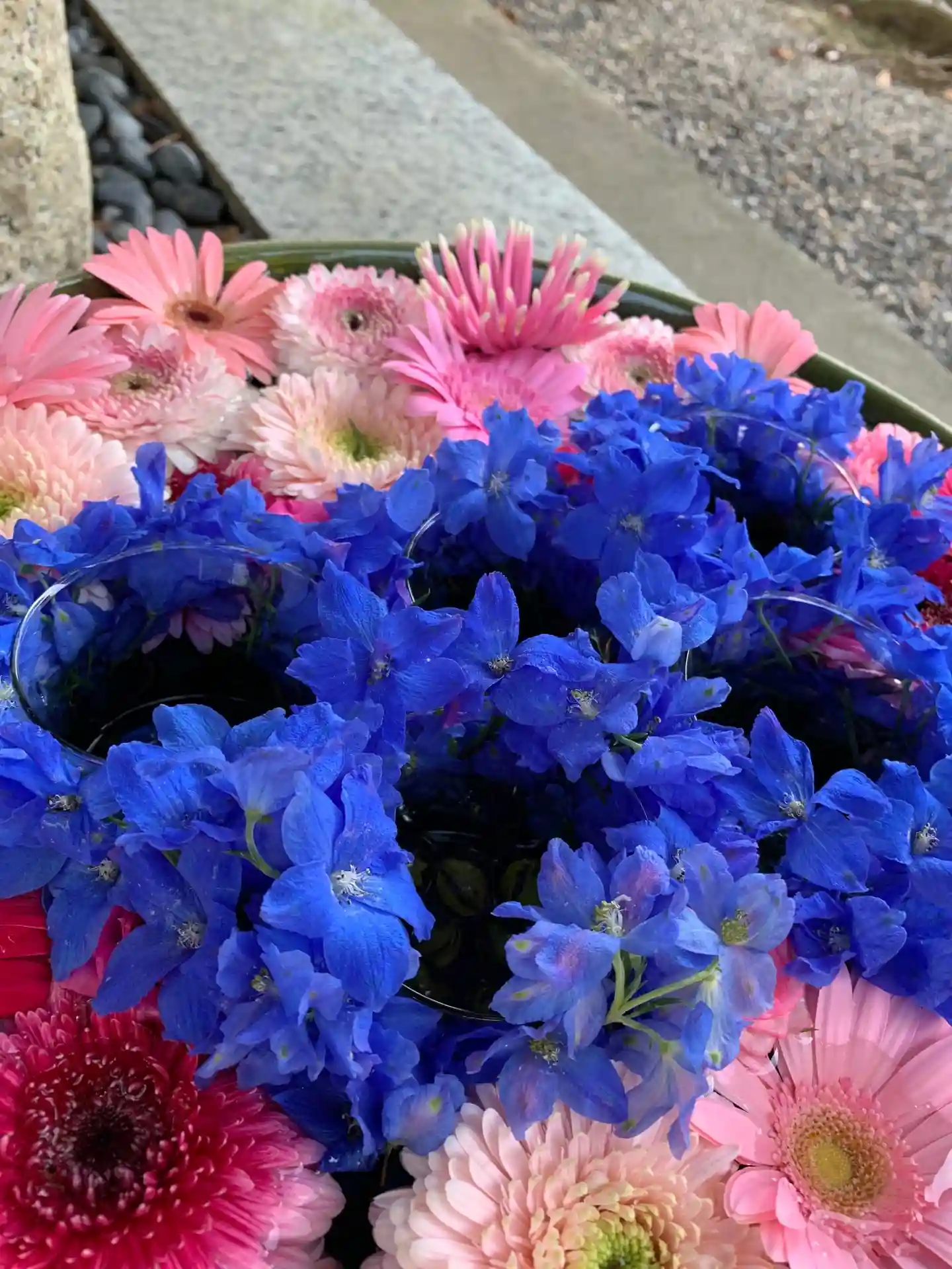 そこで当社では、花手水を五輪マークにして、日本代表を応援します🇯🇵